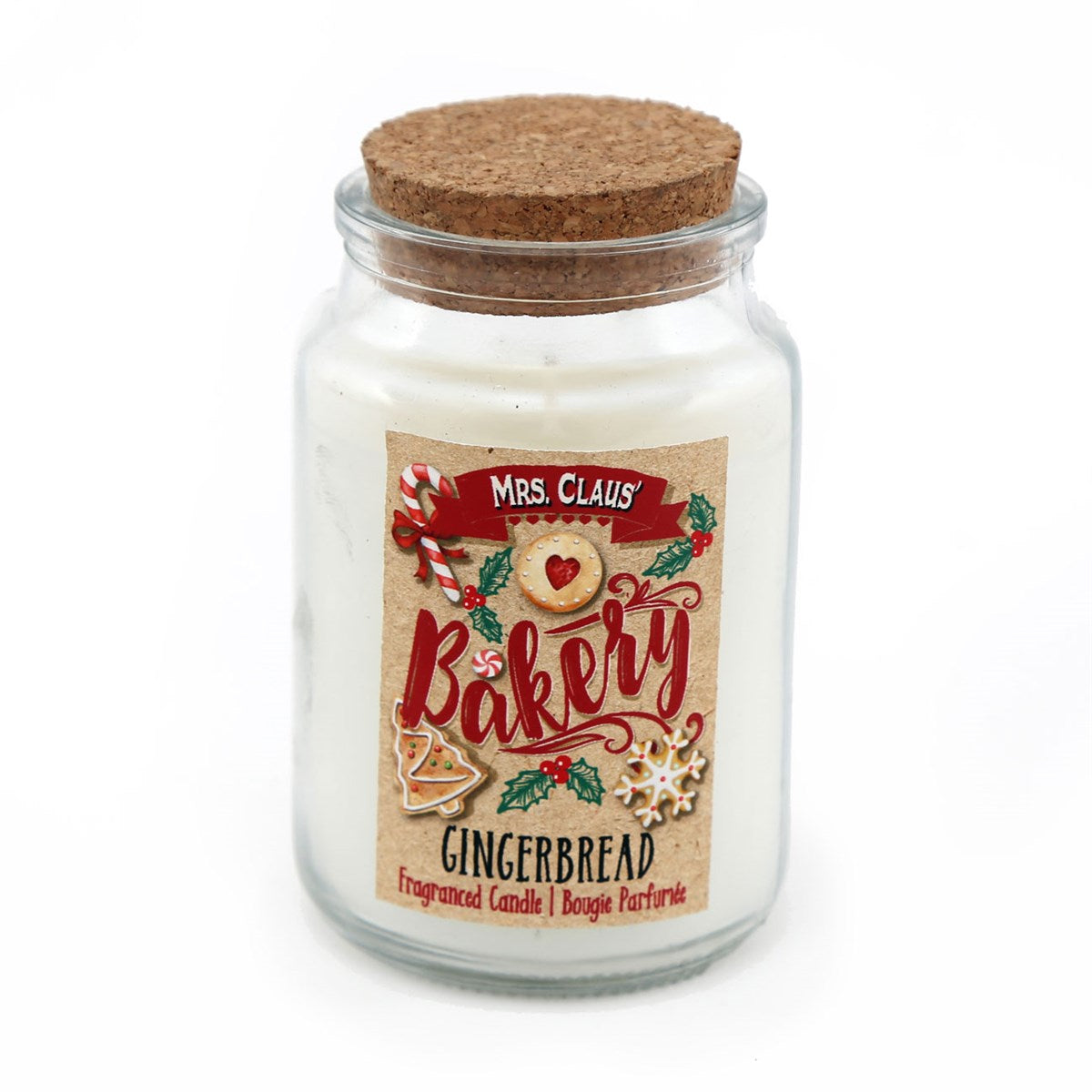 Add holiday cheer with this gingerbread-scented wax candle. The glass container features a charming Mrs. Claus baker design and comes with a wooden lid. Perfect for creating a cosy festive atmosphere.
