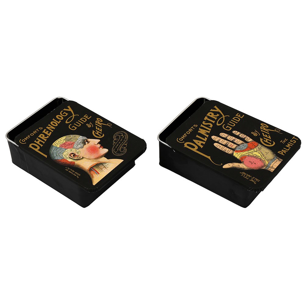 Add a vintage twist to your storage with this 12cm Phrenology Sliding Tin, available in two assorted designs. Inspired by classic phrenological illustrations, each tin features a clever push-pull sliding mechanism which makes it easy to open and close. Perfect for storing small trinkets, keepsakes, and everyday essentials. Priced per piece and sold in multiples of 2, one of each style.