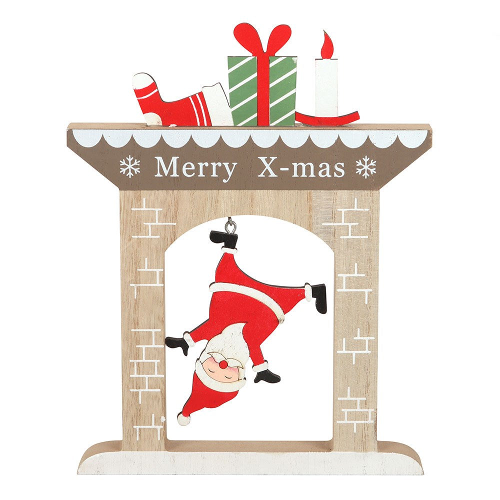 This fun and whimsical Christmas decoration depicts Santa Claus hanging out of a festive fireplace adorned with gifts. 22cm.