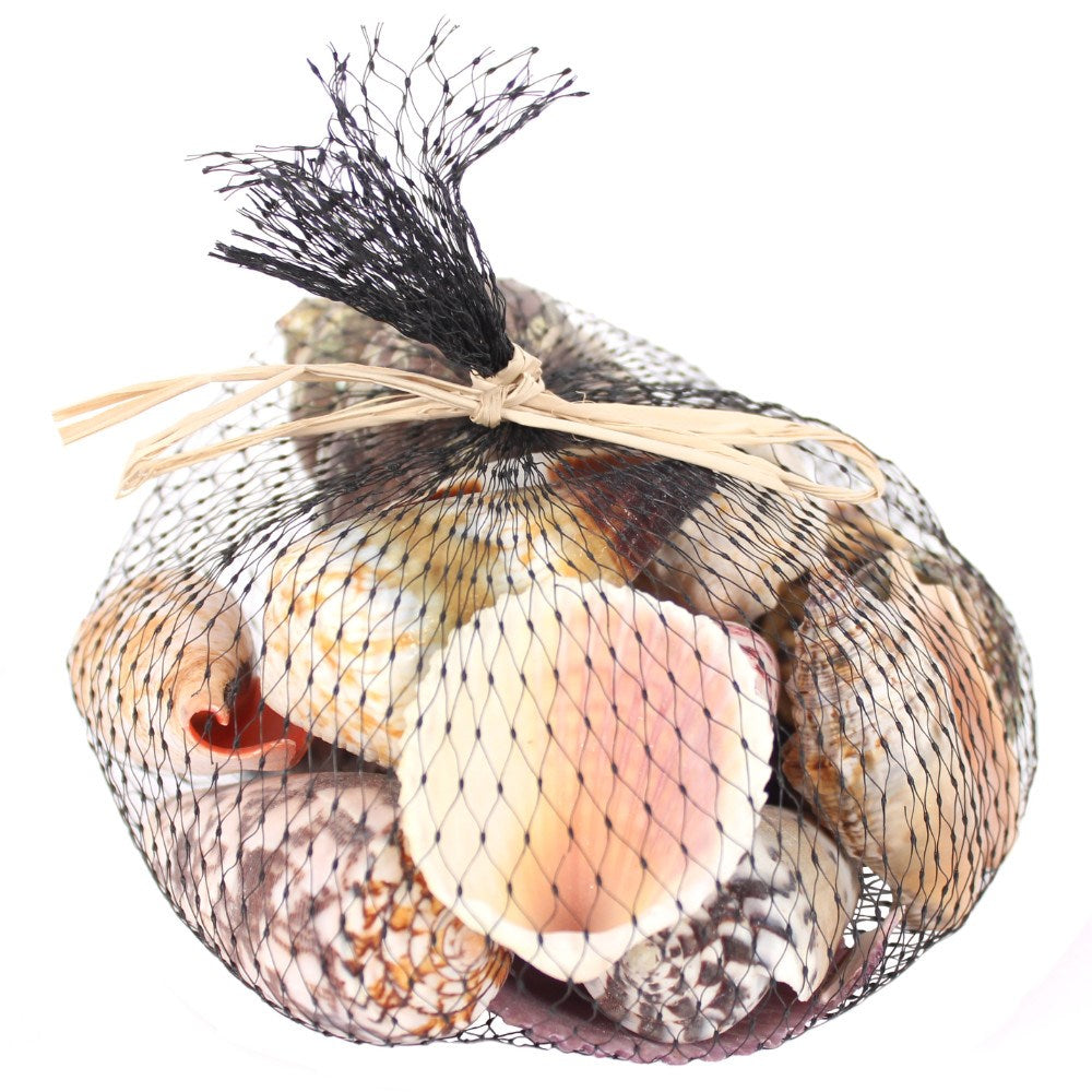 A lovely selection of pretty sea shells in a black net. Shells comes in a variety of sizes, shapes and colours. Great for home décor. 250grams.