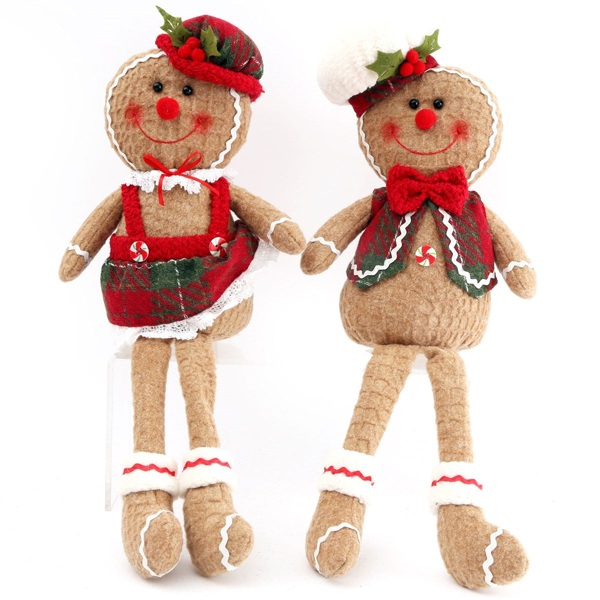Add a touch of holiday cheer to any home with these cute 38cm Gingerbread Man/Woman plush ornaments. Wonderfully detailed and made from textured waffle fabric, each gingerbread figure is dressed in a festive tartan baking outfit adorned with holly and candy canes. These charming decorations bring a touch of whimsy and festive spirit to any home. 2 assorted designs. One of each design will be included.