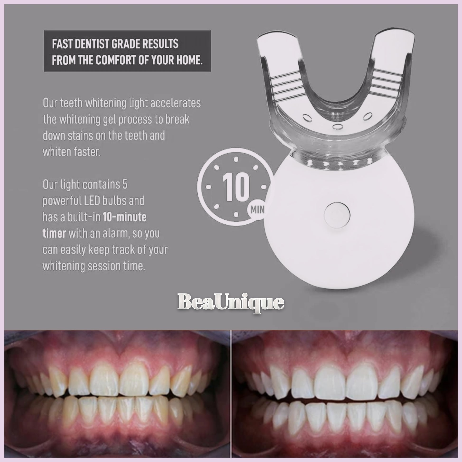 Achieve a brighter, more confident smile with the BeaUnique Teeth Whitening Home Kit. This professional-grade kit includes 3 gels and uses advanced LED technology to whiten your teeth in just 10 minutes per session. Say goodbye to stains and hello to a radiant smile.