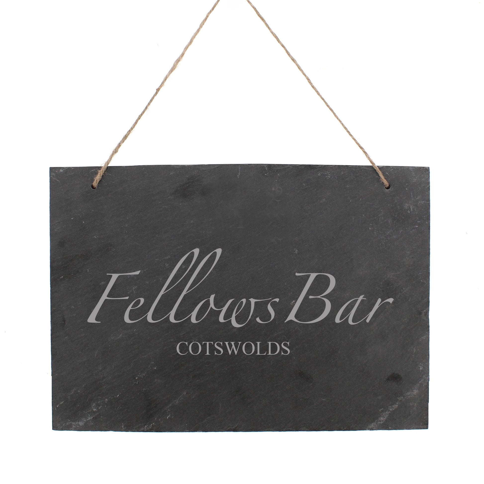 Our bespoke Slate A4 Rectangle Sign with rope hanging cord is the perfect product to sell or gift as a take home memento from a visit or an occasion at your venue or shop. Engraved with your own text, design or logo.