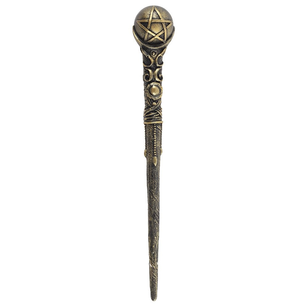 This 24cm resin wand features a bronze orb with pentagram symbol sitting atop an ornate and detailed wand stem. Elegant and appealing, this magic wand is a necessity for any witch or wizard's collection. This wand is not a toy and should be handled with care.