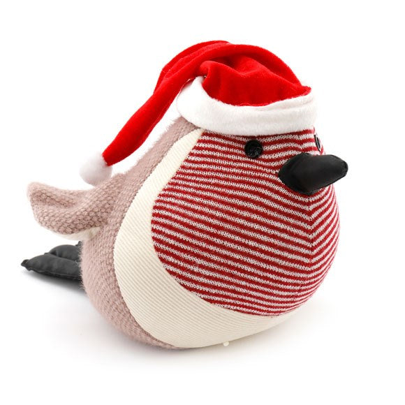 Add a touch of festive charm to any home with this adorable robin doorstop. Featuring a Santa hat detail and a red and white patterned design, this cute, plump robin doorstop is both functional and decorative. The soft fabric style adds a cozy and warm feel, making it perfect for the winter season.