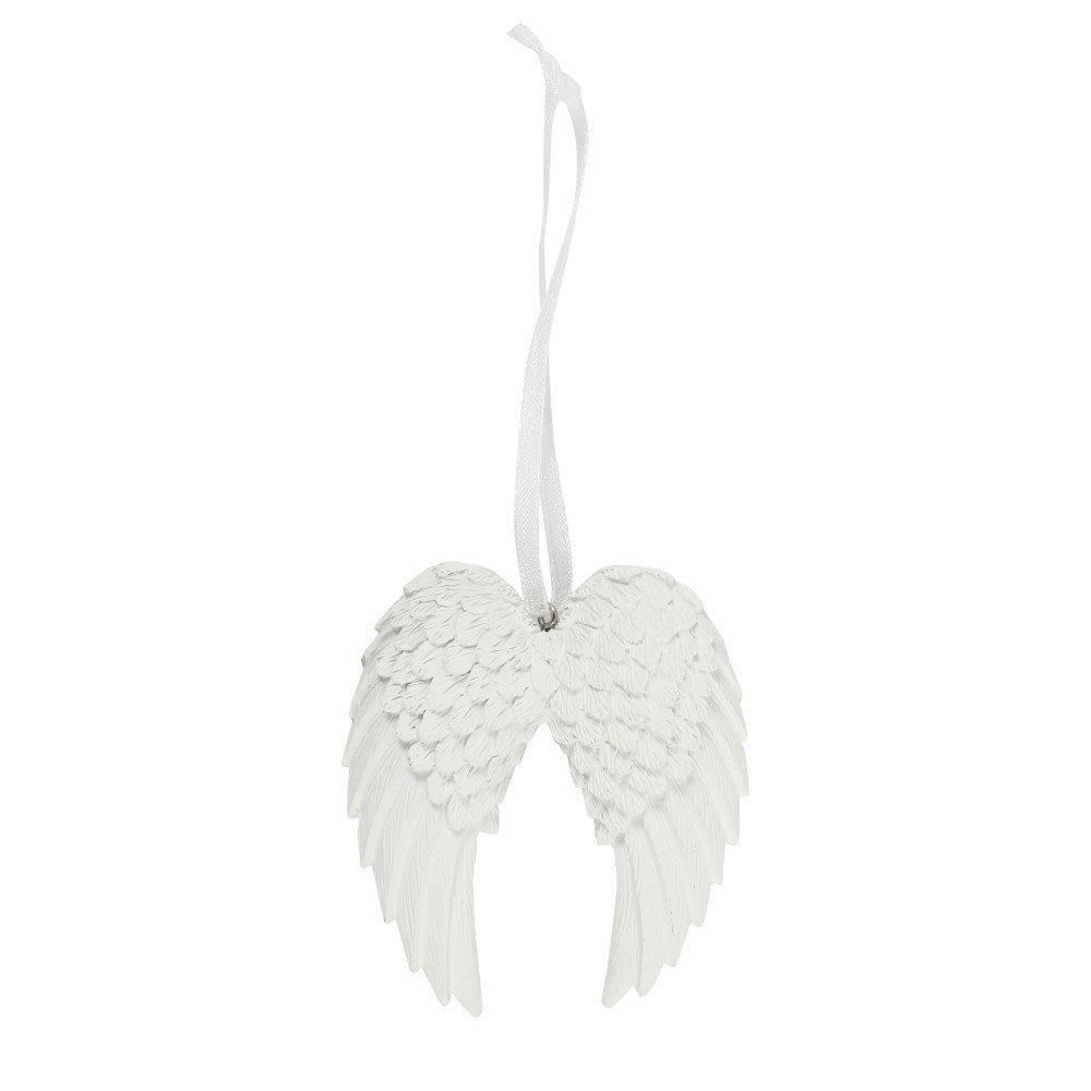 A beautiful white double angel wing hanging decoration with intricate feather detail. Part of the Winter Wonderland range.