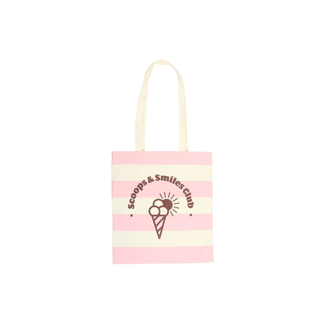 Brighten your day with this pink 'Scoops & Smiles Club' tote bag, perfect for carrying summer essentials, shopping, or beach day goodies. Featuring a cheerful ice cream design and lightweight construction, it?s ideal for lovers of fun, seaside style. 95% polyester, 5% cotton.