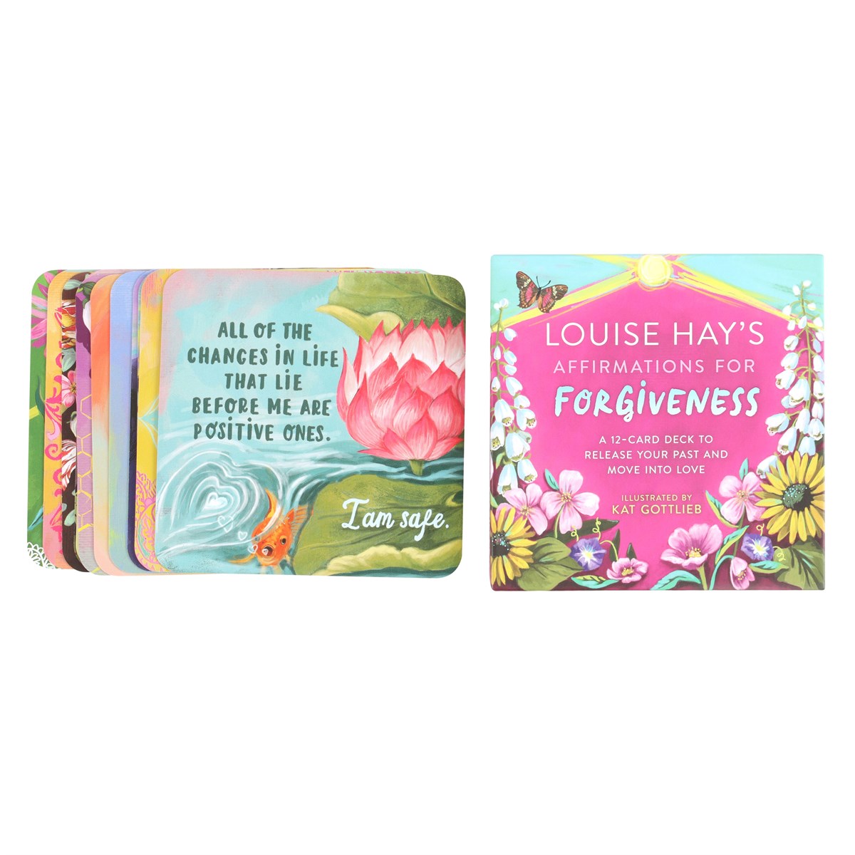 Louise Hay's Affirmations for Forgiveness Tarot Cards includes a 12-card deck and an instructional brochure. This deck focuses on 12 affirmation cards which can be used as a tool to release emotional attachment to the past and move forward with forgiveness and positivity. Beautifully presented in a sturdy box.