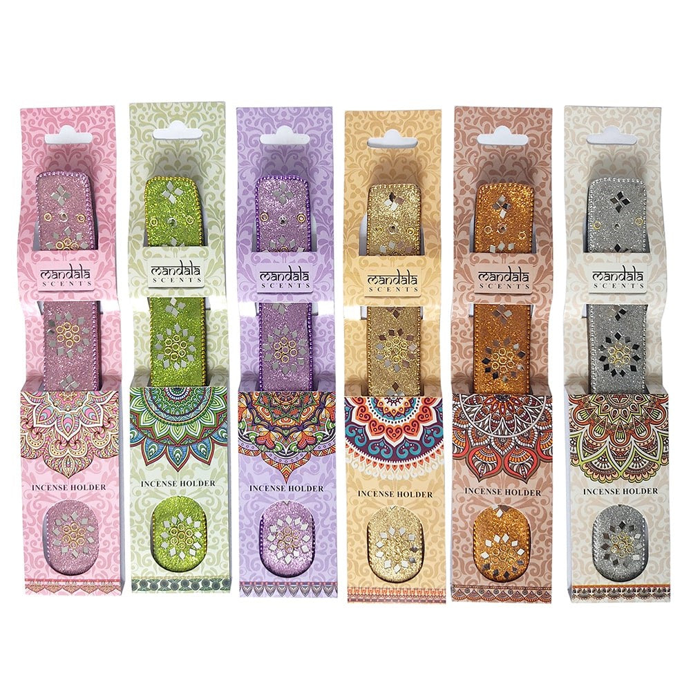 Beautiful incense holder with a sparkling design available in 6 assorted colours. When you purchase the minimum order of 6pcs you will receive 1pc per colour.