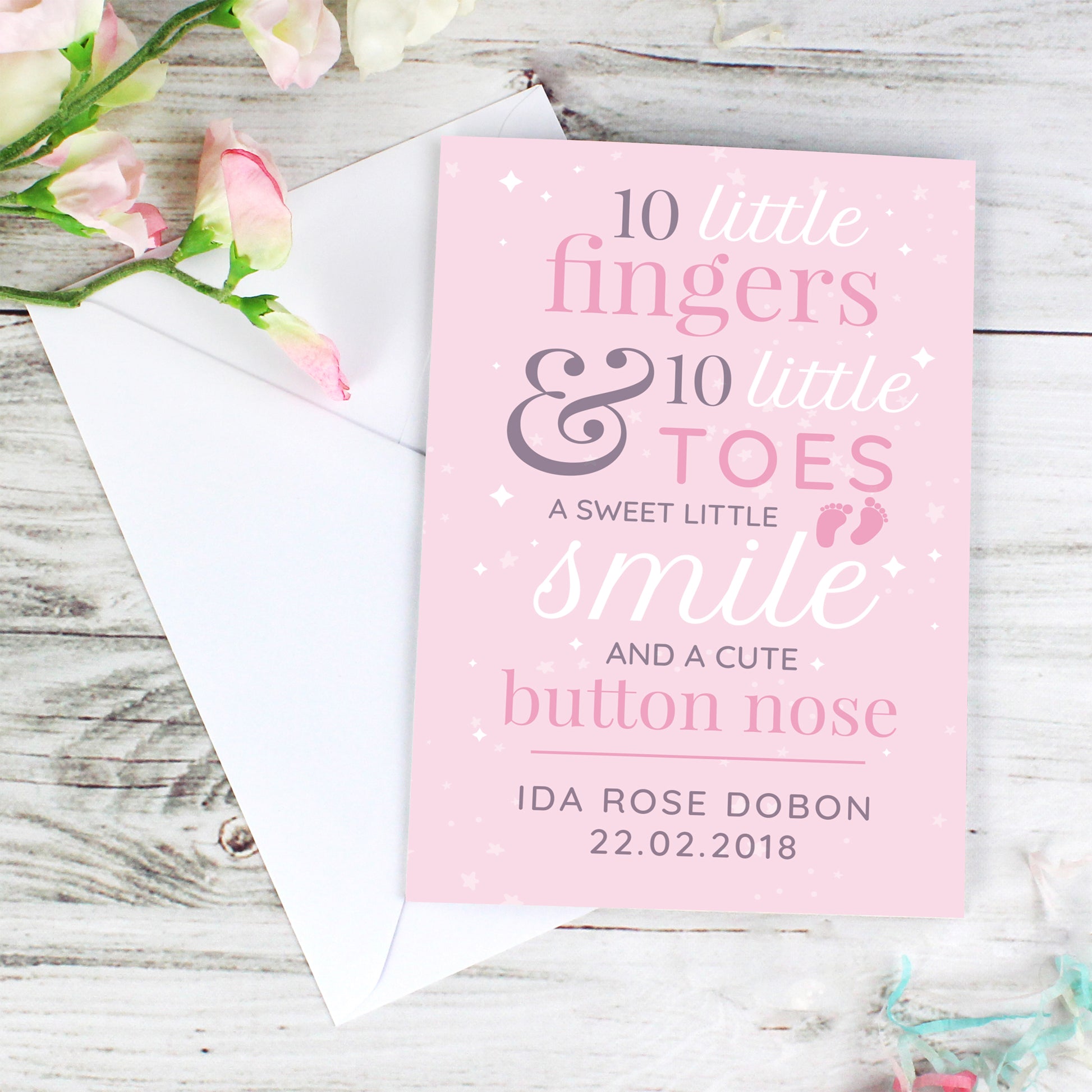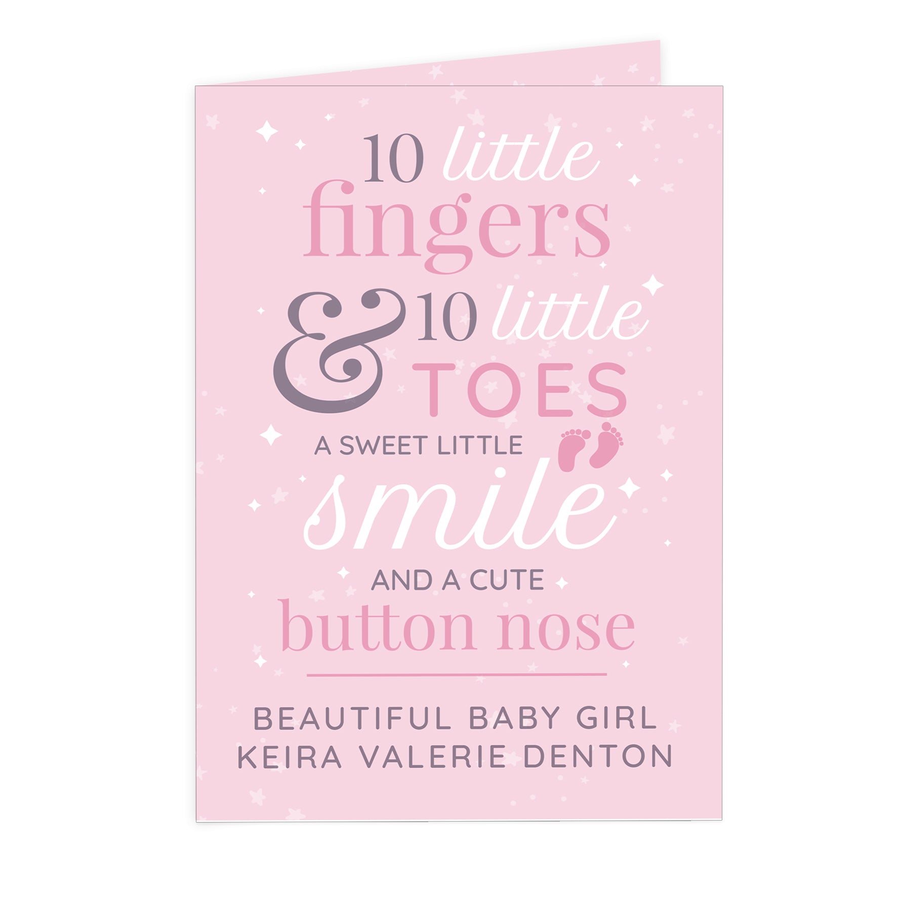Please note the poem '10 little fingers & 10 little toes. A sweet little smile and a cute button nose' is fixed text.