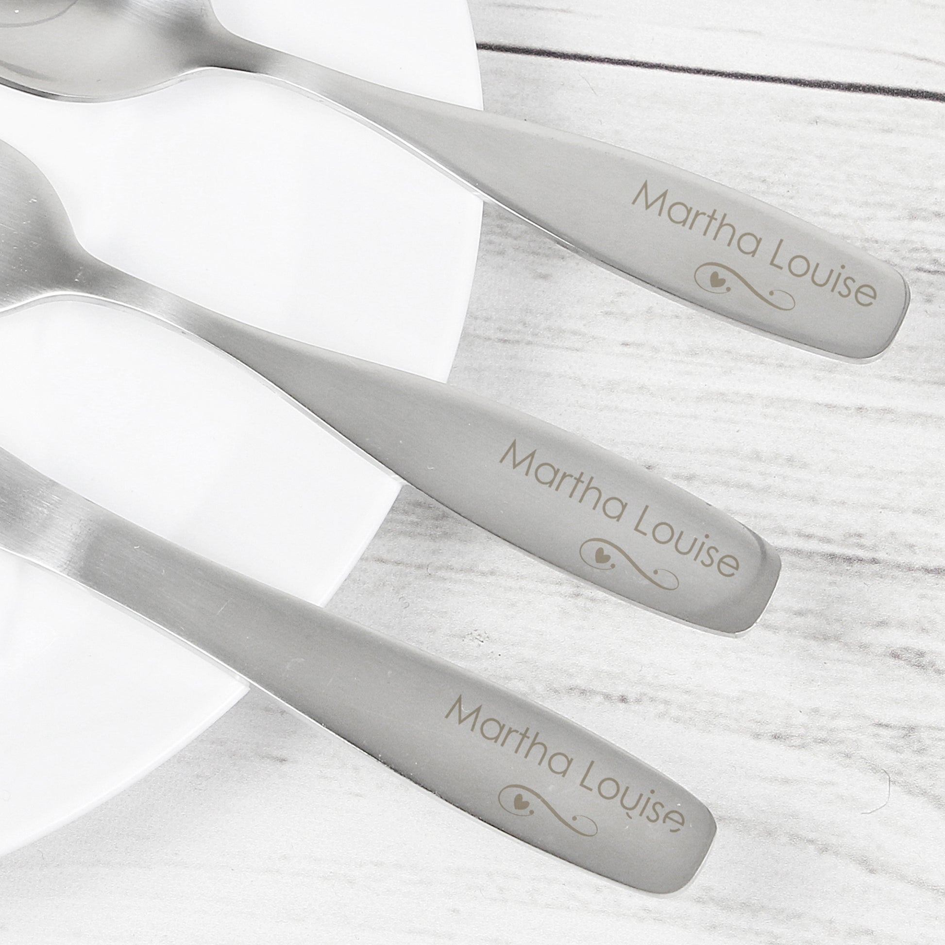 Personalised 3 Piece Swirls & Hearts Cutlery Set