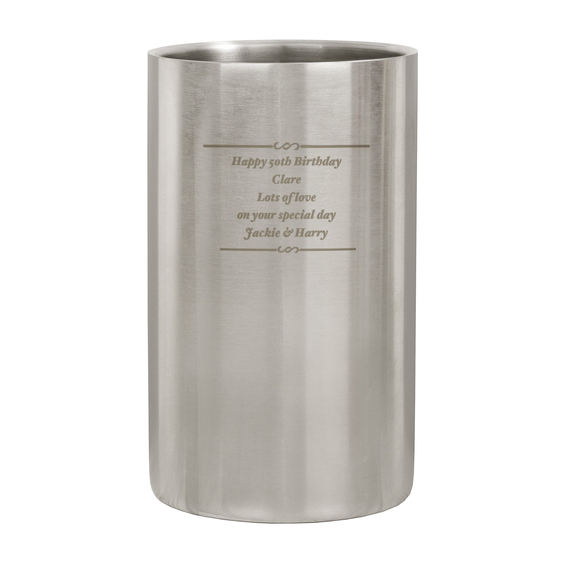 Personalise this Any Message Stainless Steel Wine Cooler with up to 5 lines of 30 characters each.