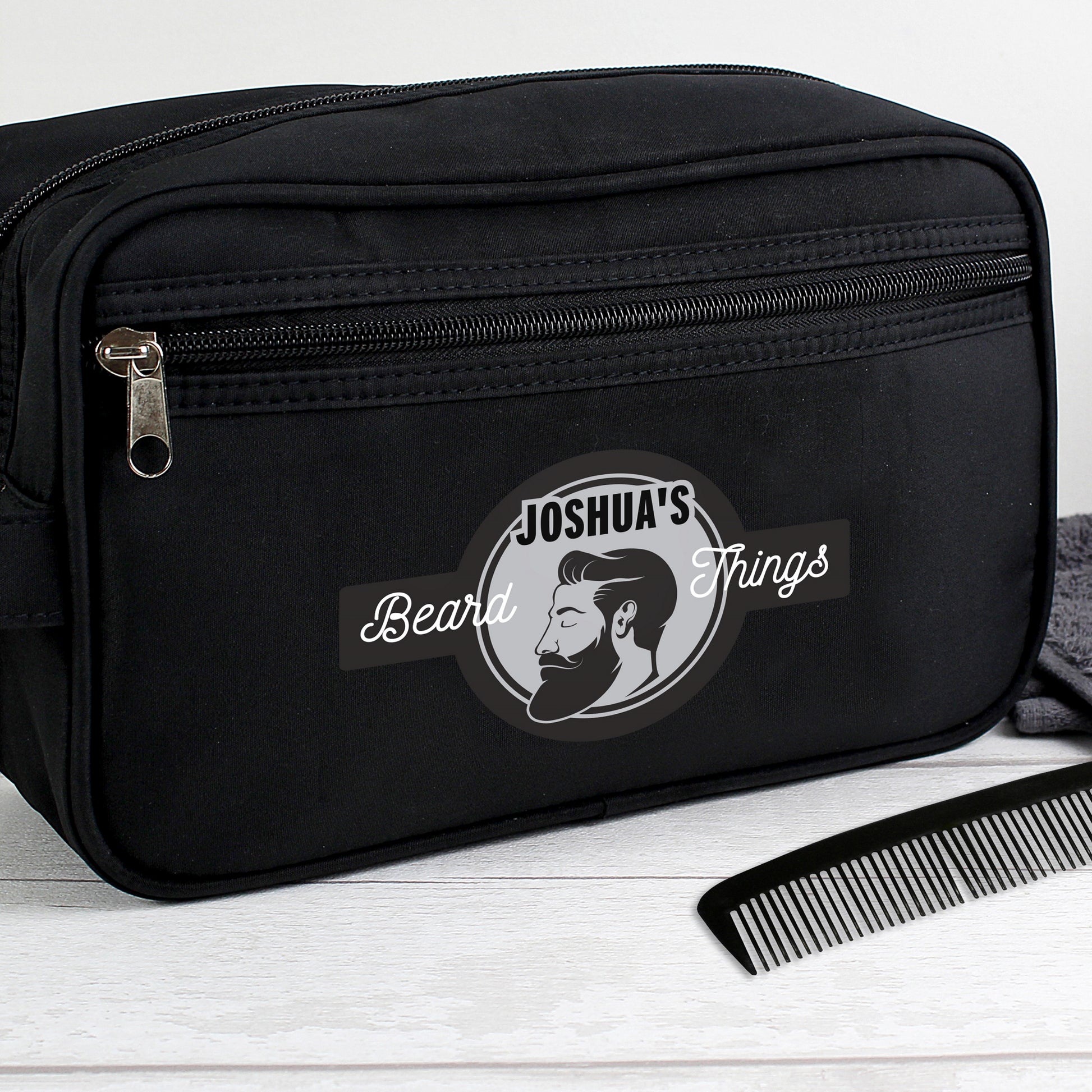 Personalised Beard Things Black Toiletry Bag