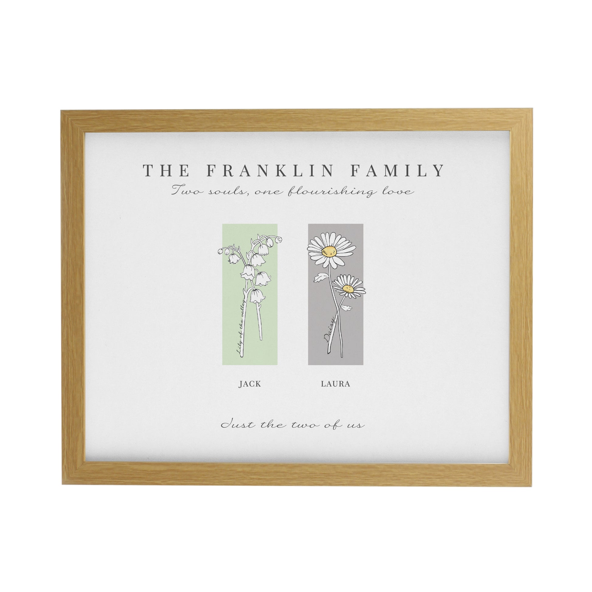 Personalised Birth Flower Family of 2 Oak Framed Print