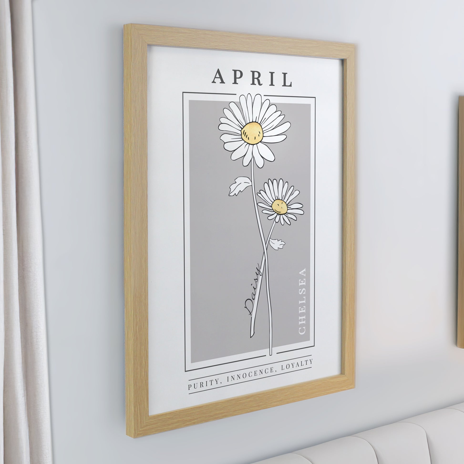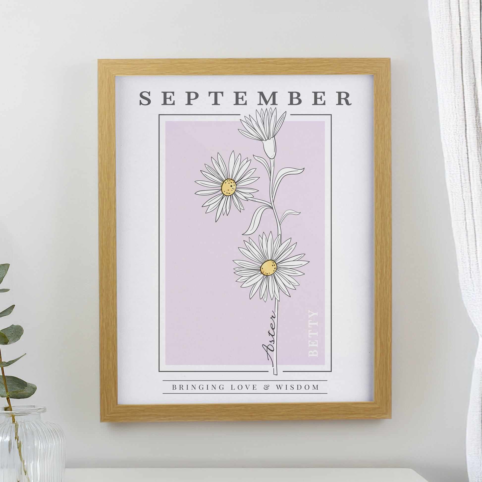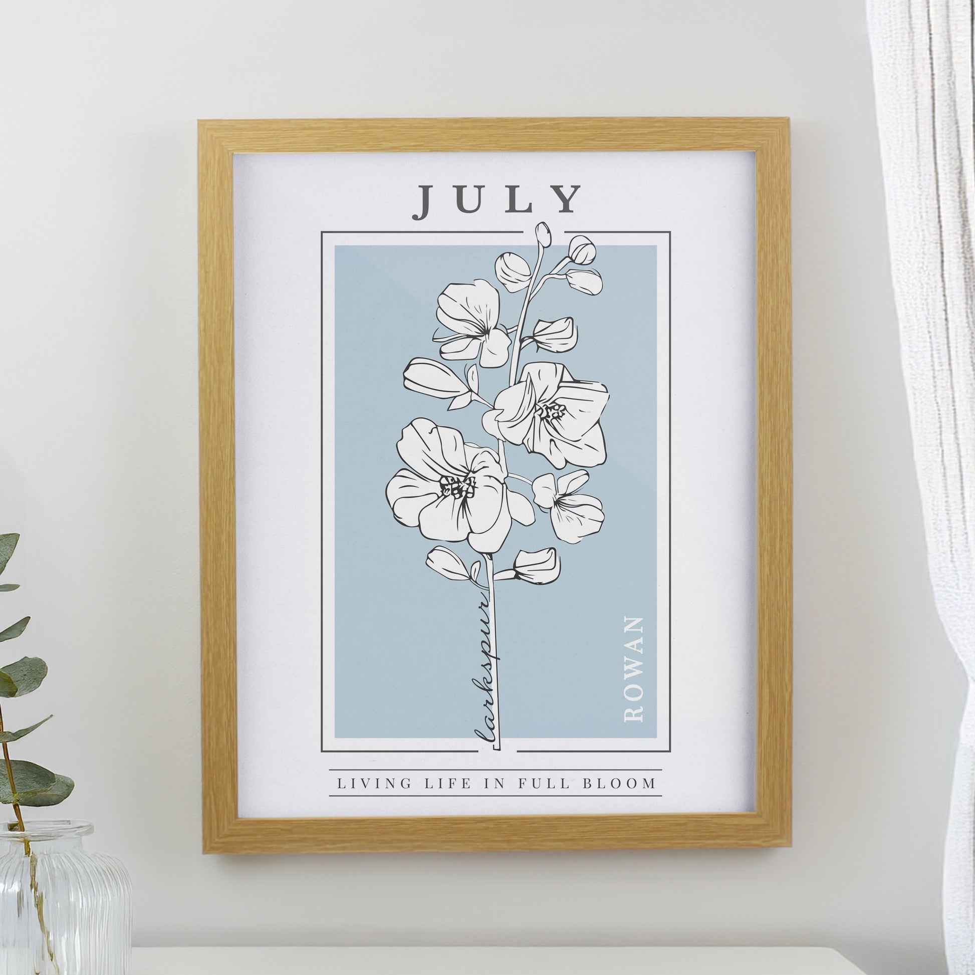 Personalised Birth Flower Oak Poster Frame