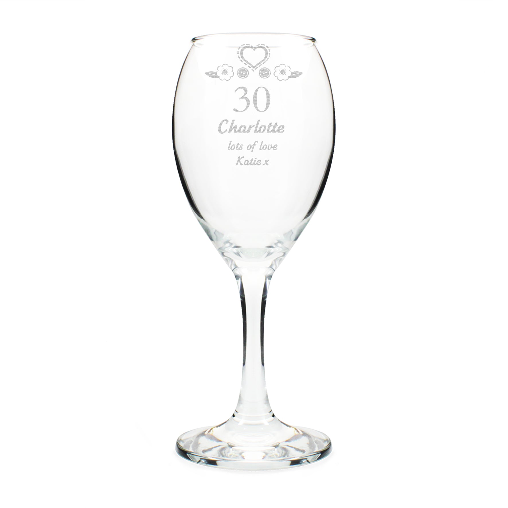 Make this amazing Birthday Craft Wine Glass extra special by adding a special personalisation consisting of, an age up to 2 characters, a name up to 12 characters and a message over two lines of 20 characters.