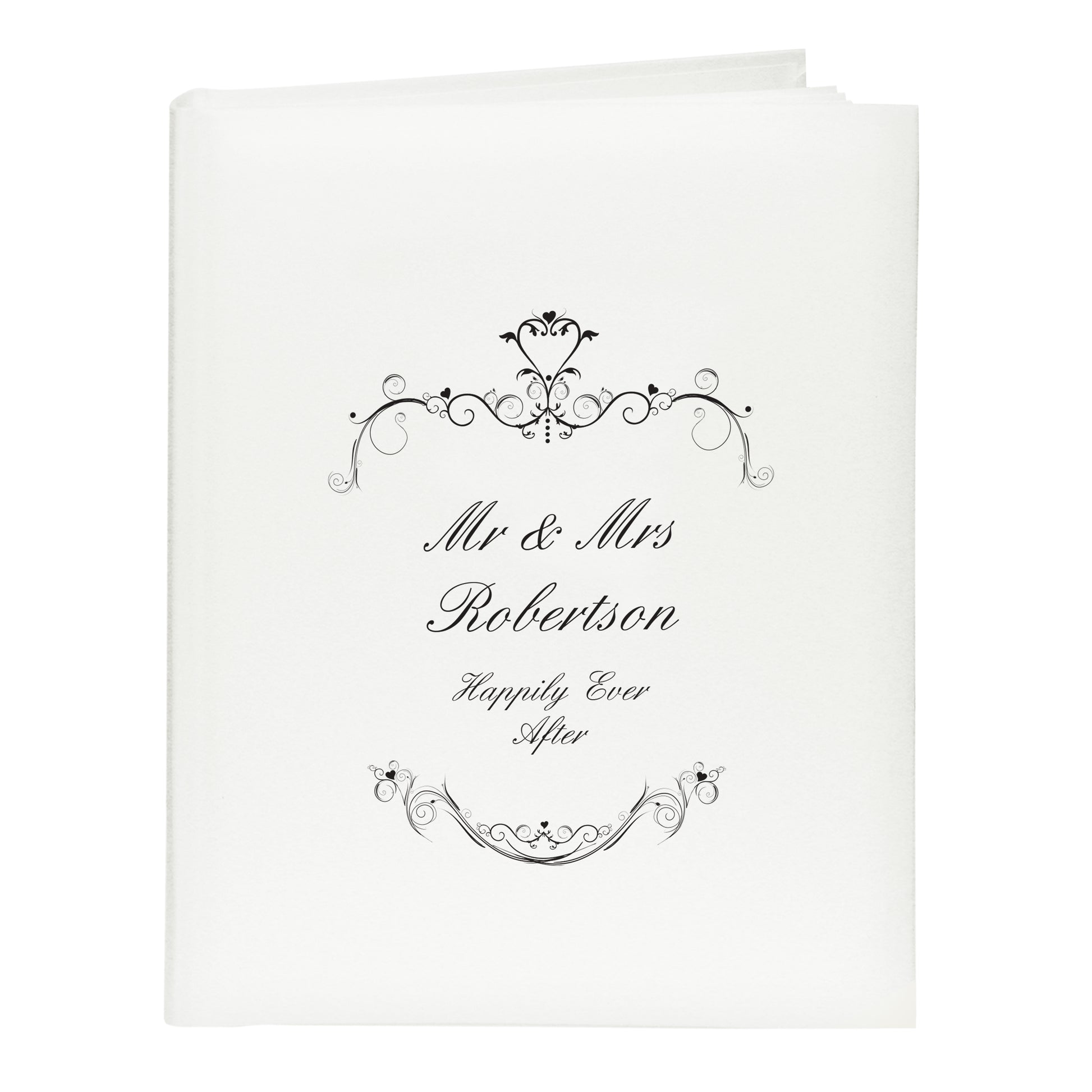This Black Ornate Swirl Traditional Cream Photograph Album can be personalised with any message of your choice over 4 lines up to 25 characters per line. The first two lines are in bold.