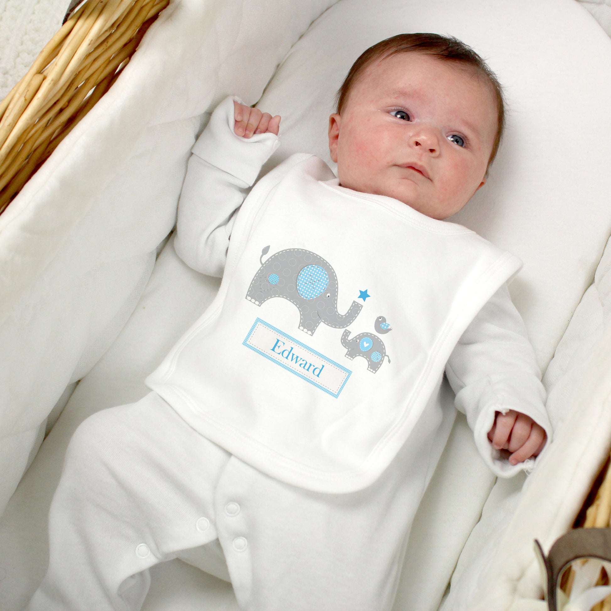 Personalised Blue Elephant 0-3 Months Baby Bib