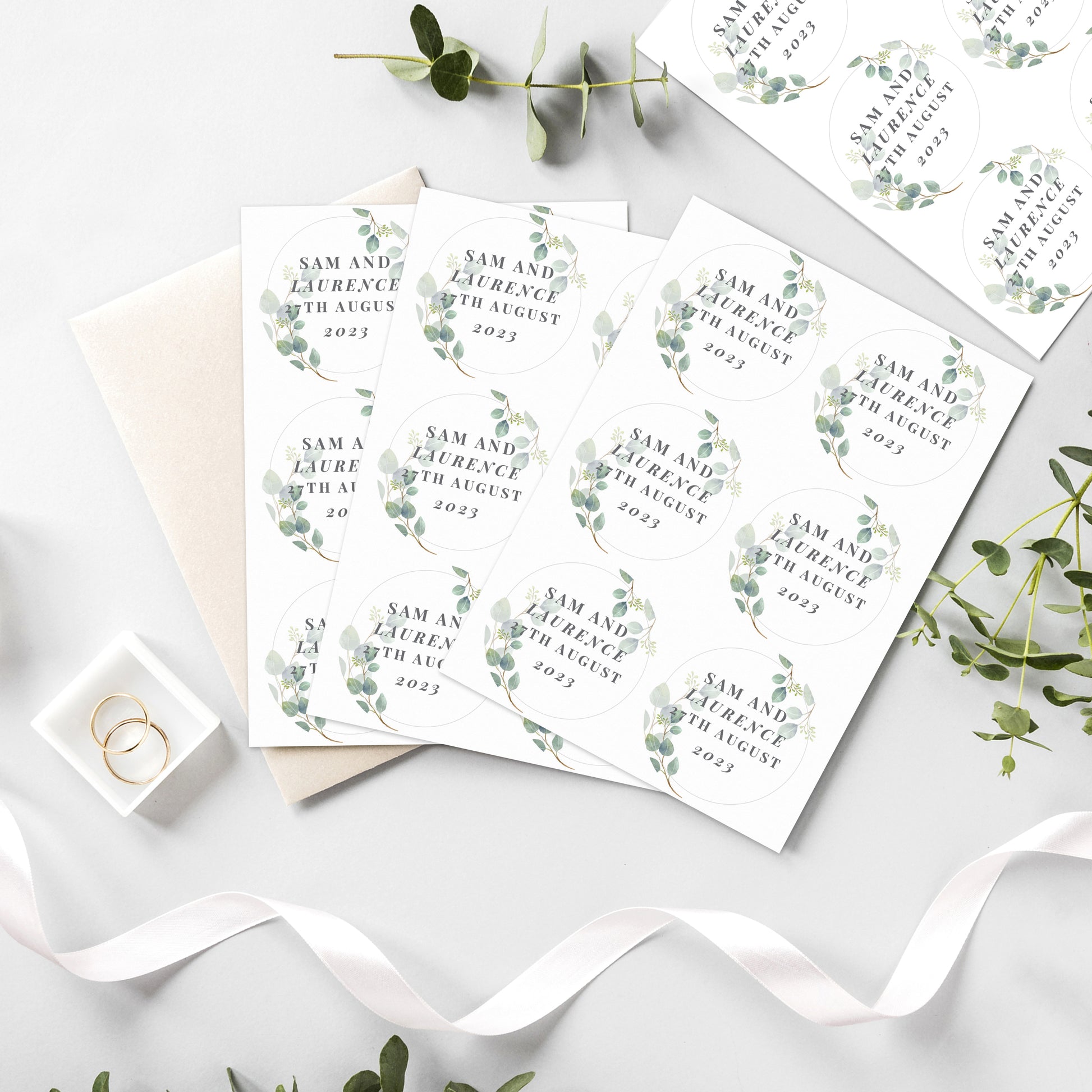 Personalise this set of 24 Botanical Stickers with 4 lines of text as below