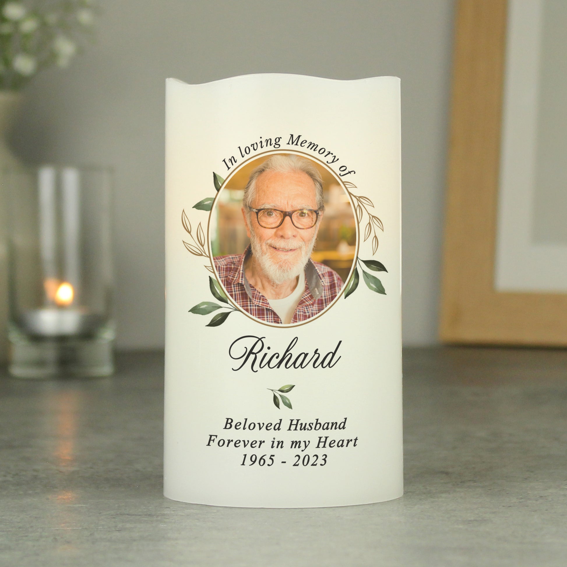 Personalised Botanical Memorial Photo Upload LED Candle