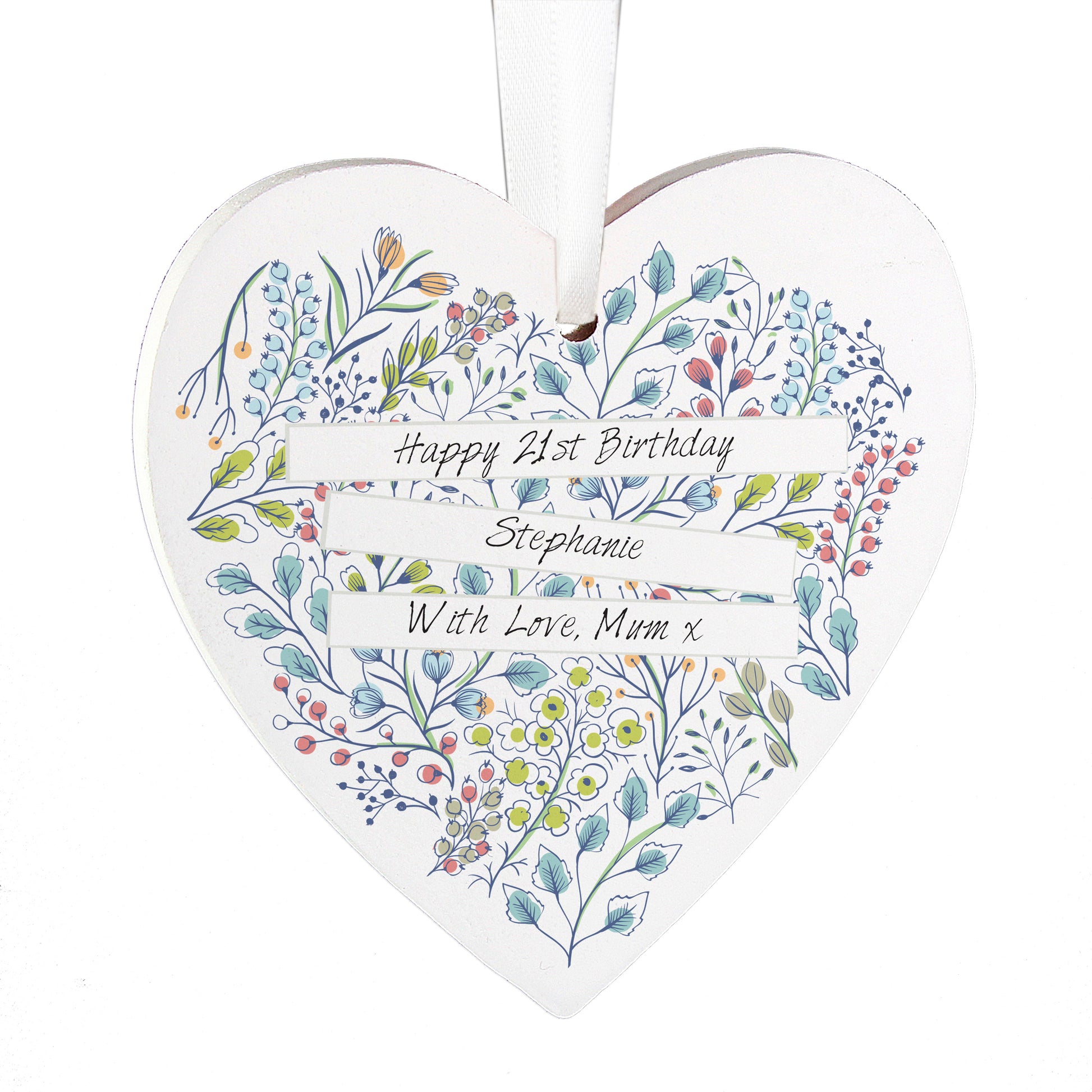Personalised Botanical Scroll Wooden Heart Decoration