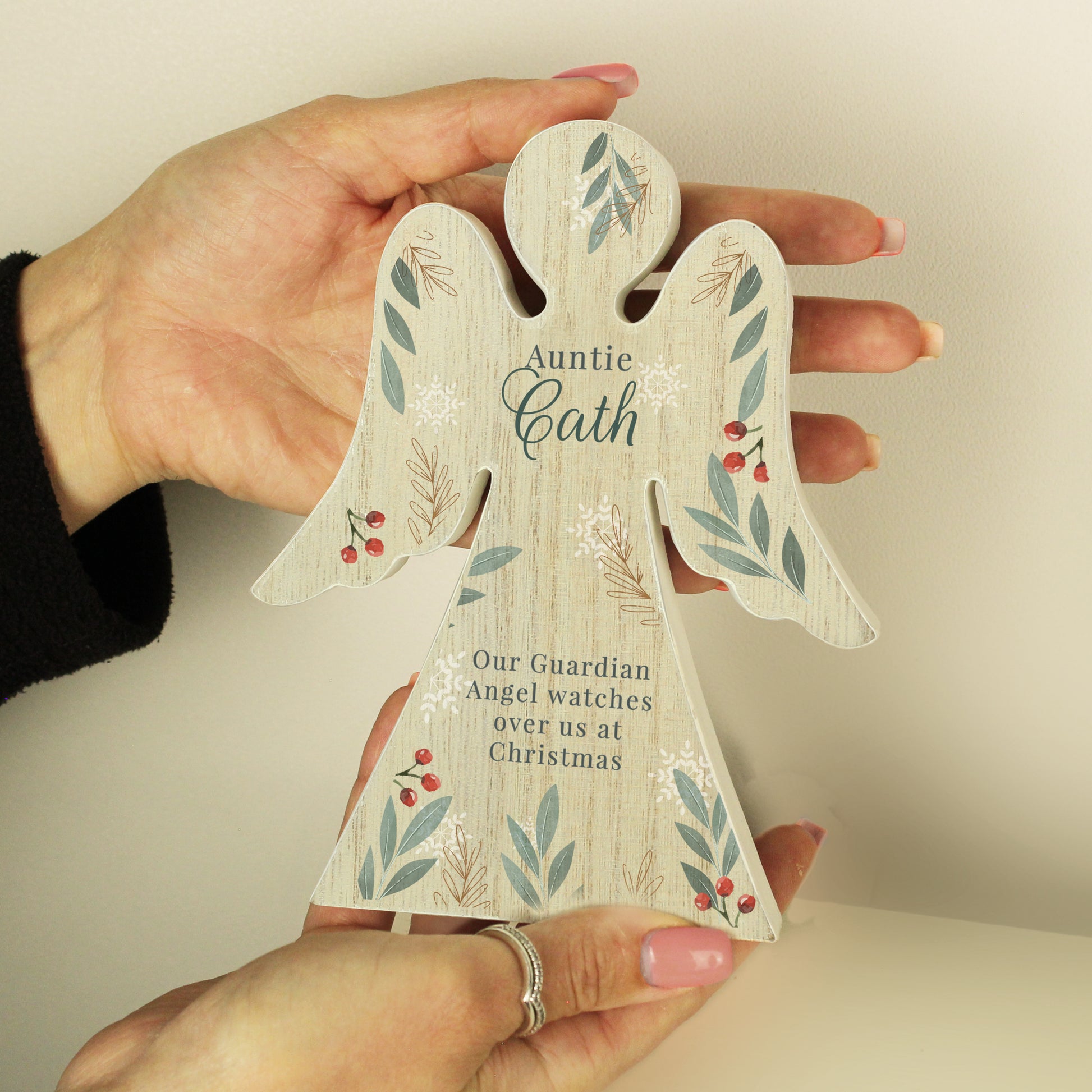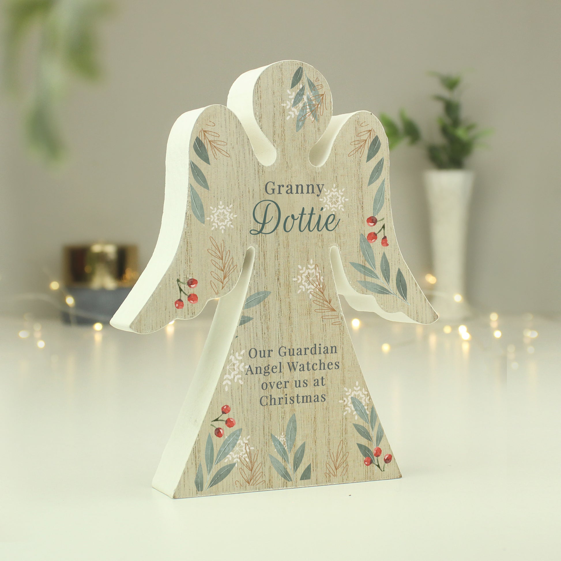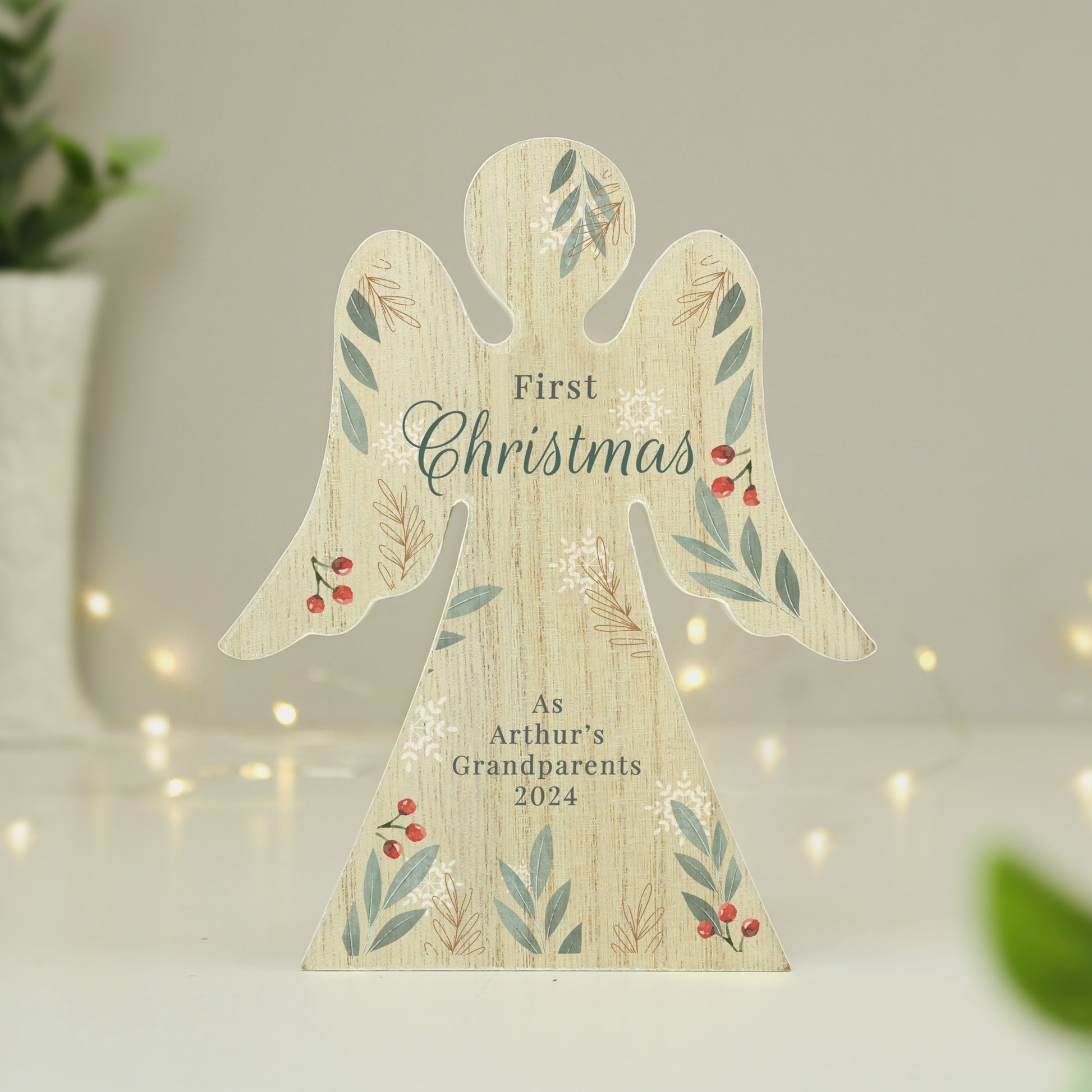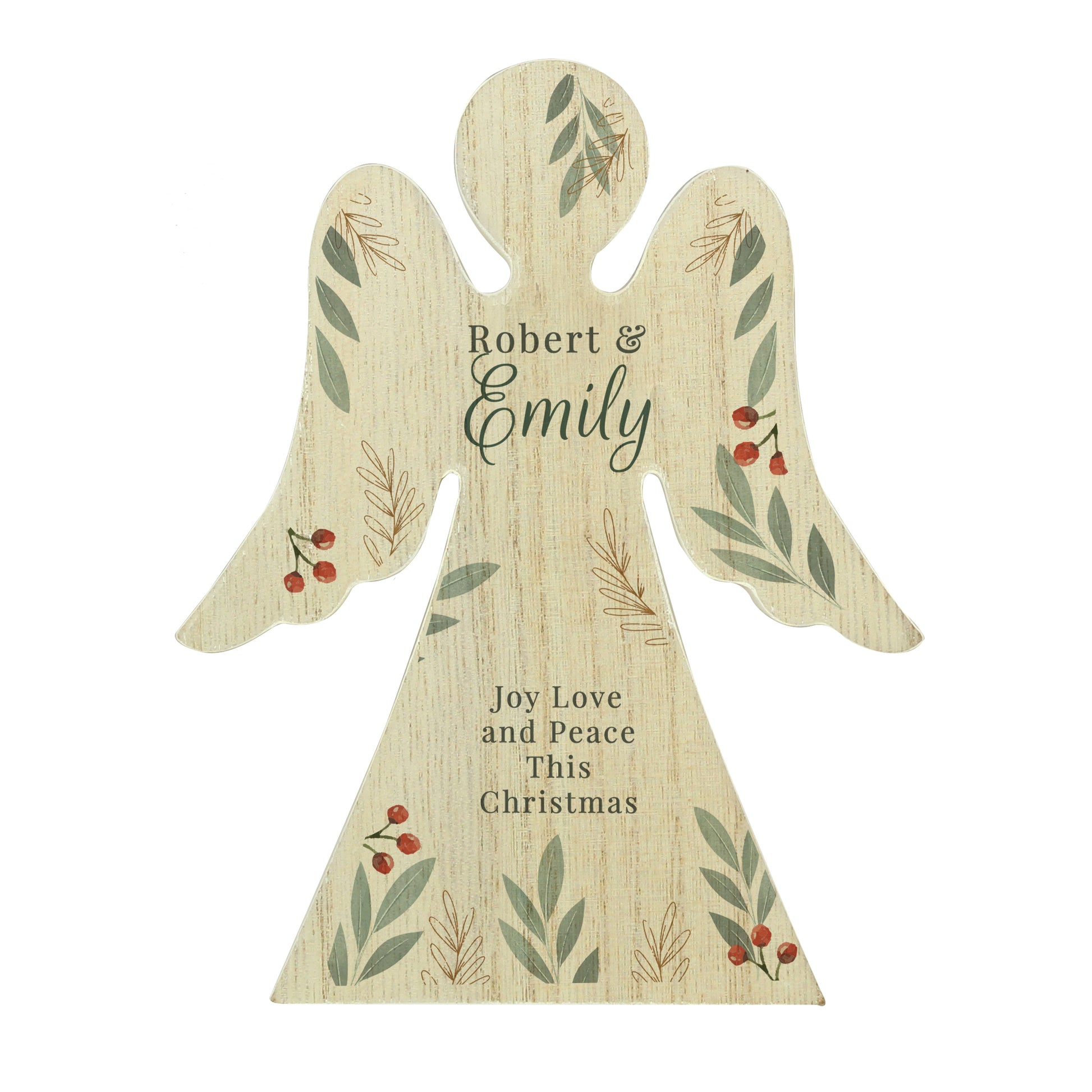 Personalised Christmas Foliage Wooden Angel Ornament