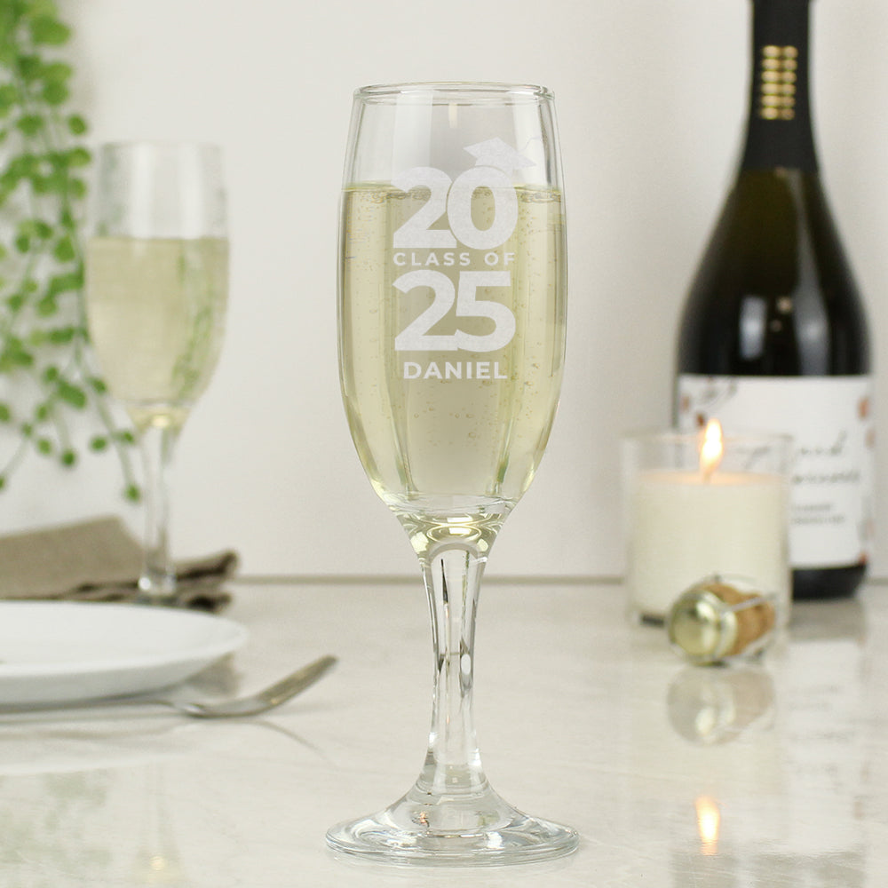 Raise a glass to celebrate your graduation with this personalised Class of Graduation glass.