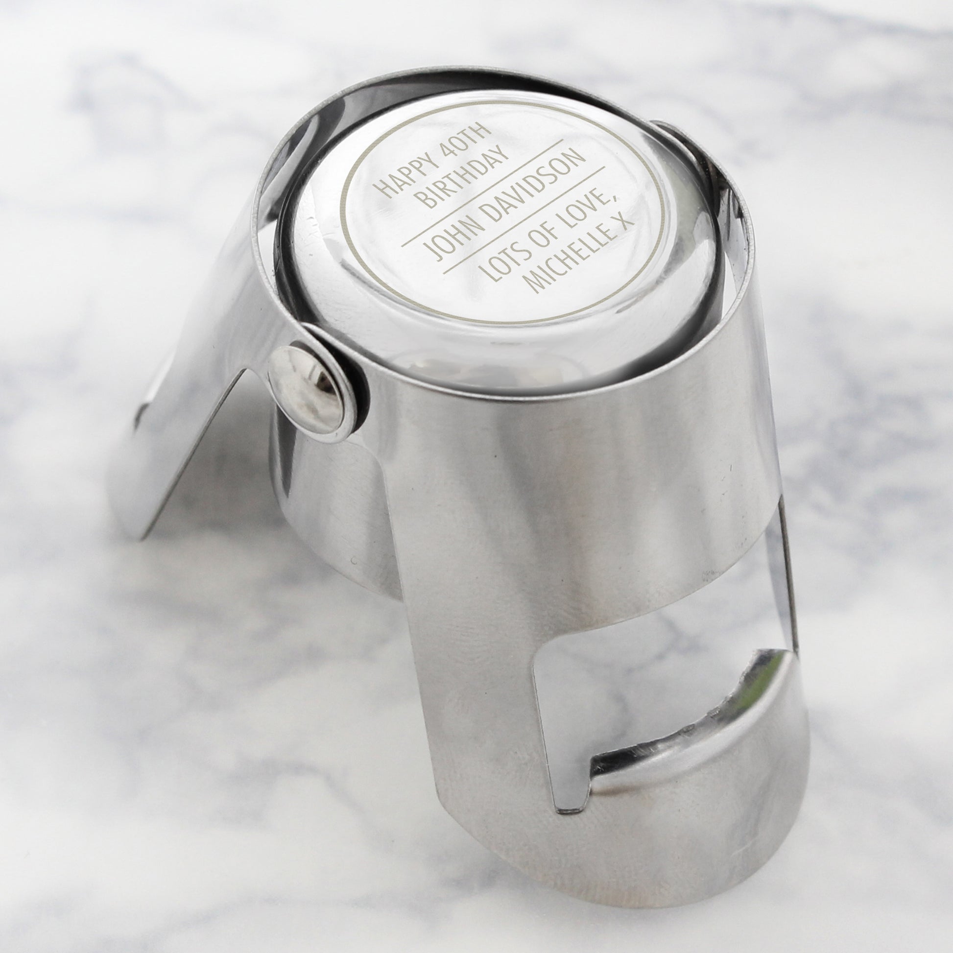 Our personalised 'Any Message' Stainless Steel Bottle Stopper ensures the airtight closure of champagne bottles and wine bottles that use corks. Works equally well on Prosecco, Champagne and sparking wine. It's perfect as a unique and thoughtful gift for any celebration.