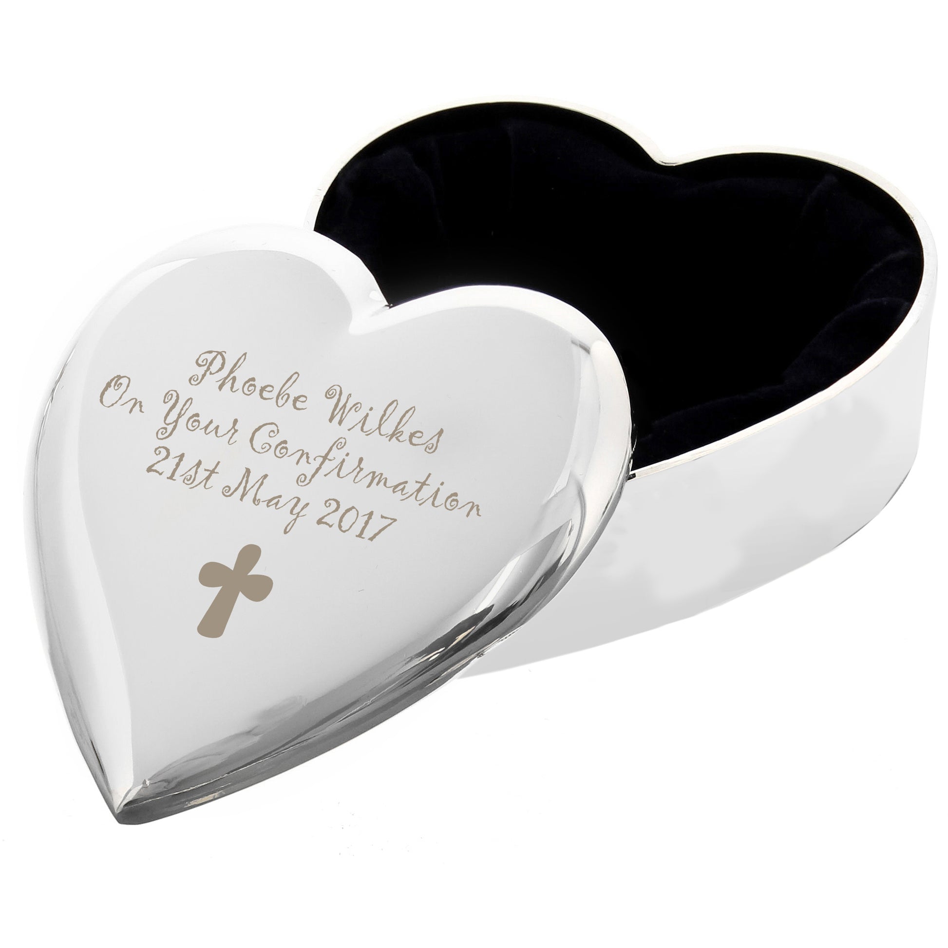 This two piece heart trinket features a cross motif and can be personalised with any message of your choice up to 15 characters on line 1 and line 3 and 20 characters on line 2.