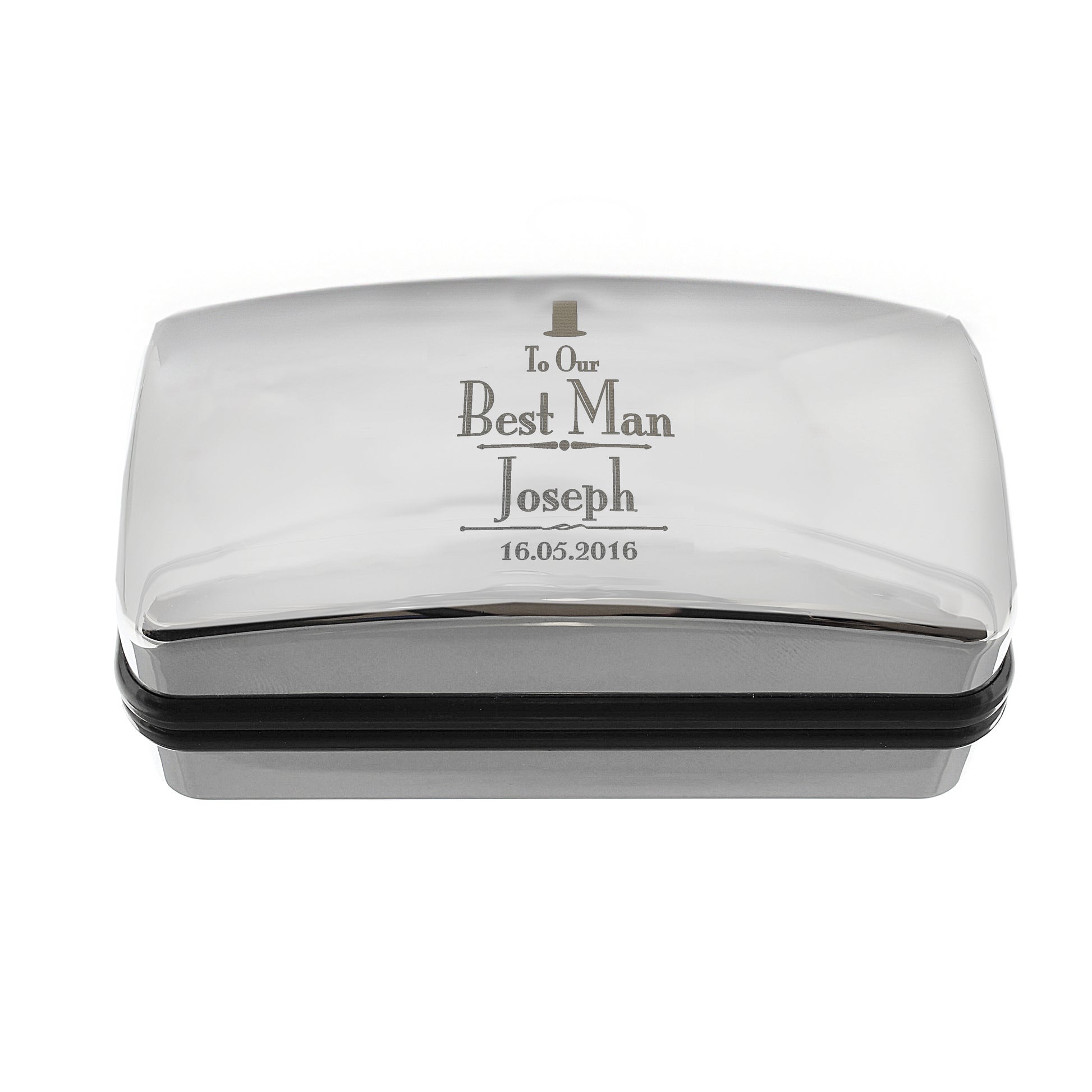 Personalise this Decorative Wedding Best Man Cufflink Box with a name up to 12 characters and a date up to 15 characters.