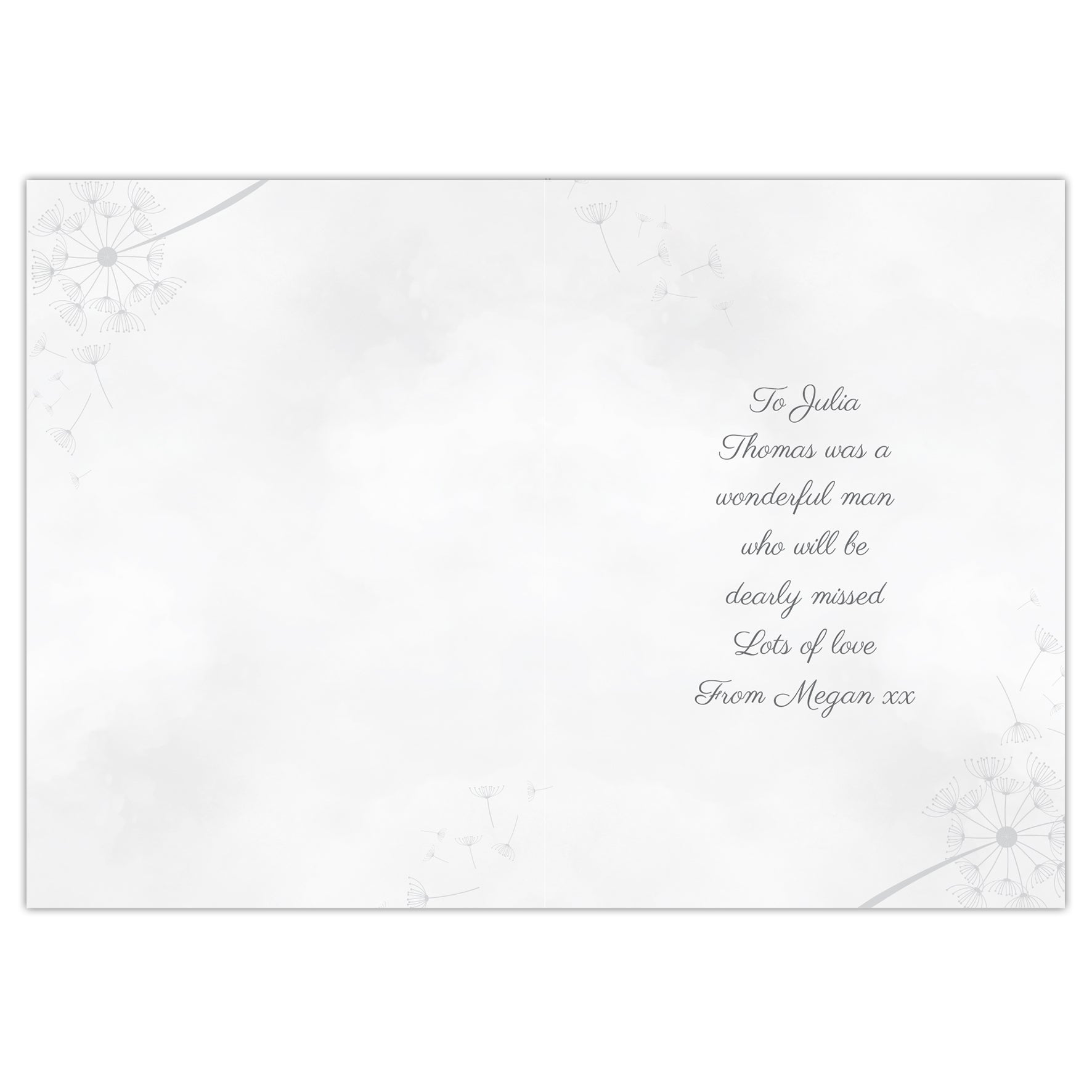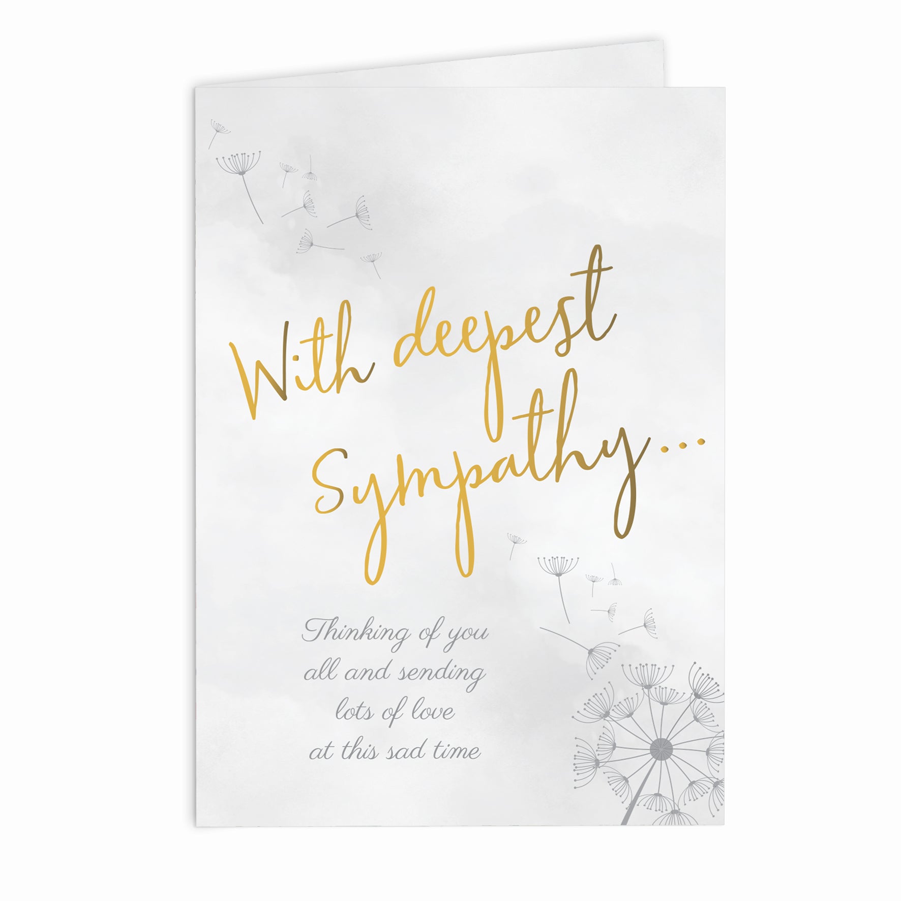 The perfect way to send your condolences to a friend or loved one. Featuring delicate dandelion seeds and clocks, with gold foil effect writing.