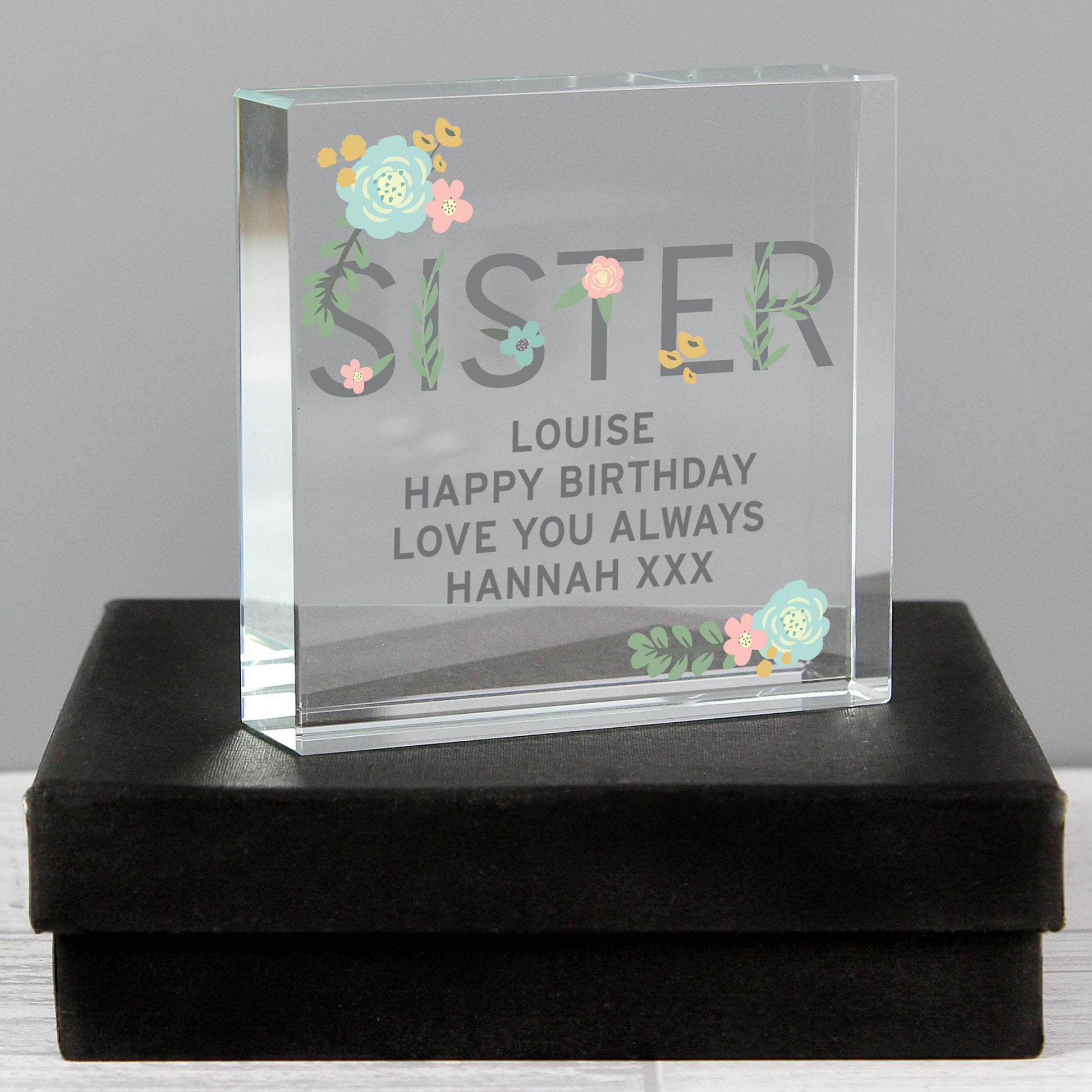 This Floral Sister Glass Token is the perfect modern gift to give on any occasion.