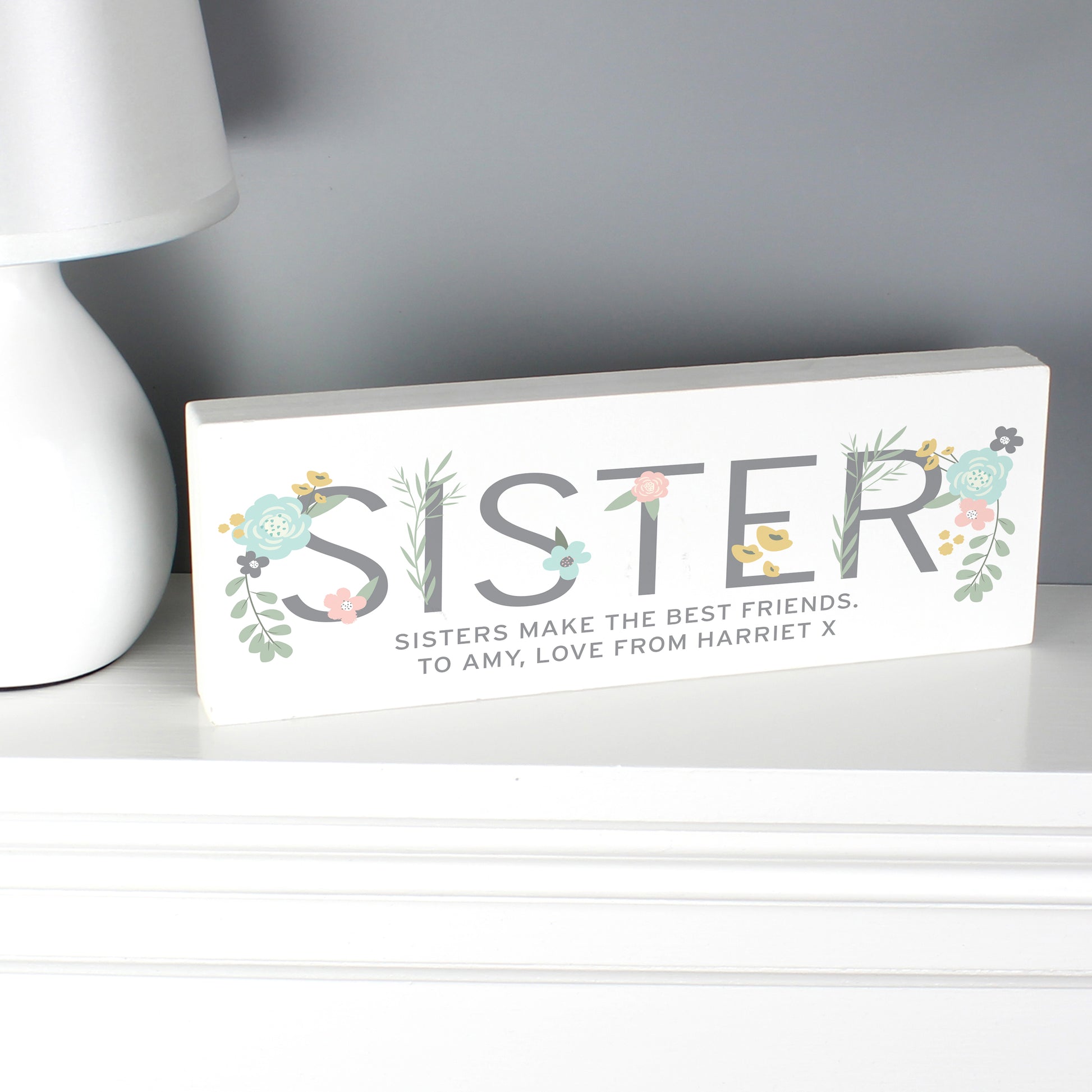 Personalised Floral Sister Wooden Mantel Decoration