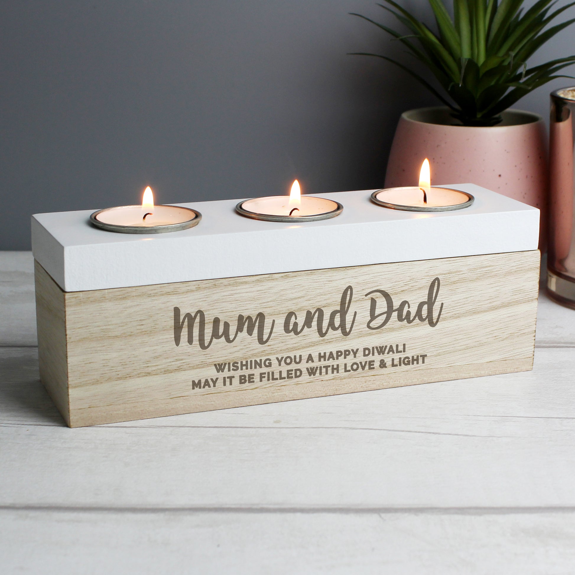 This wooden, shabby chic box can store a small amount of tea lights or trinkets. Three tea lights can be displayed on top of the box, creating a unique feature for any shelf or mantelpiece.