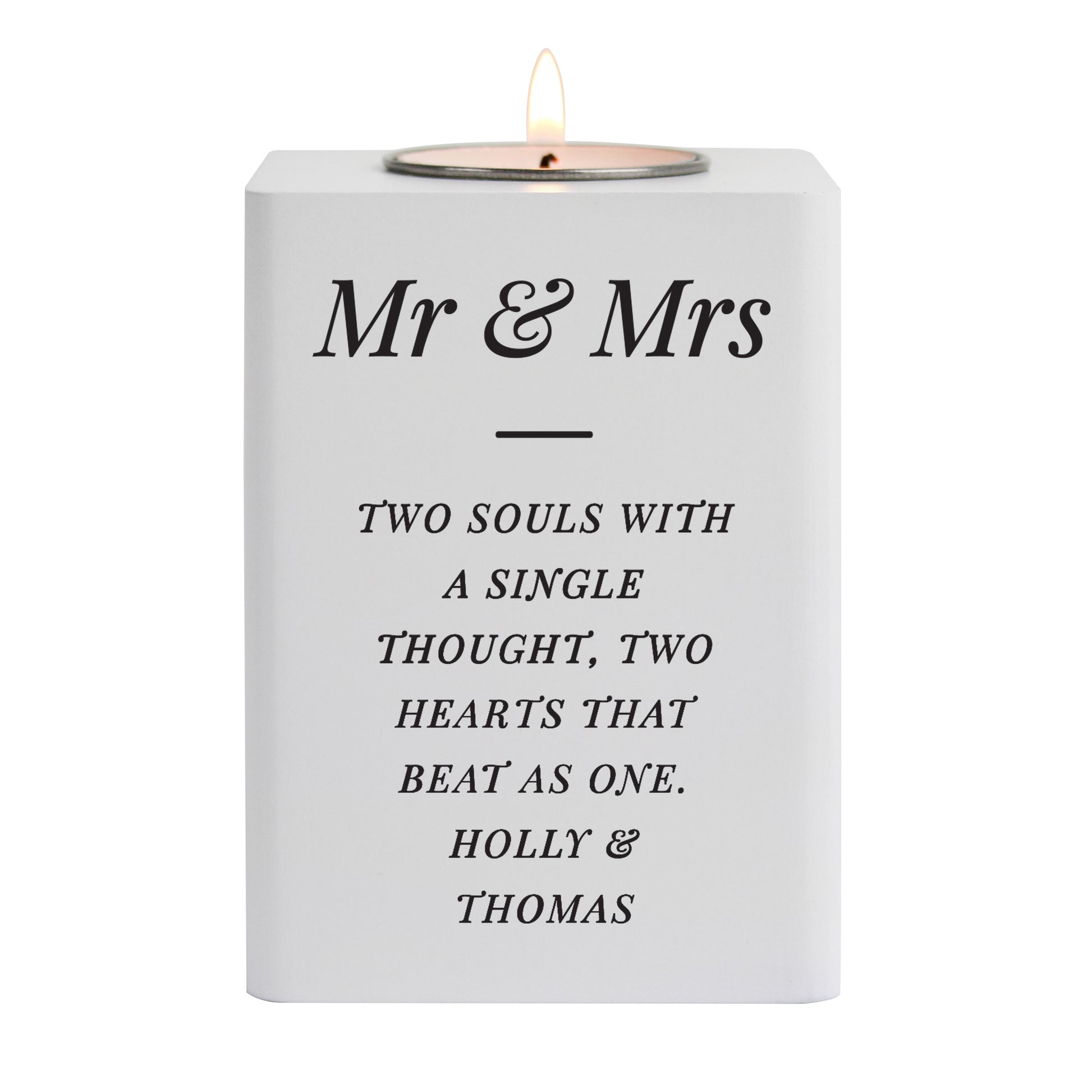 Personalise this white wooden tea light holder with the following: