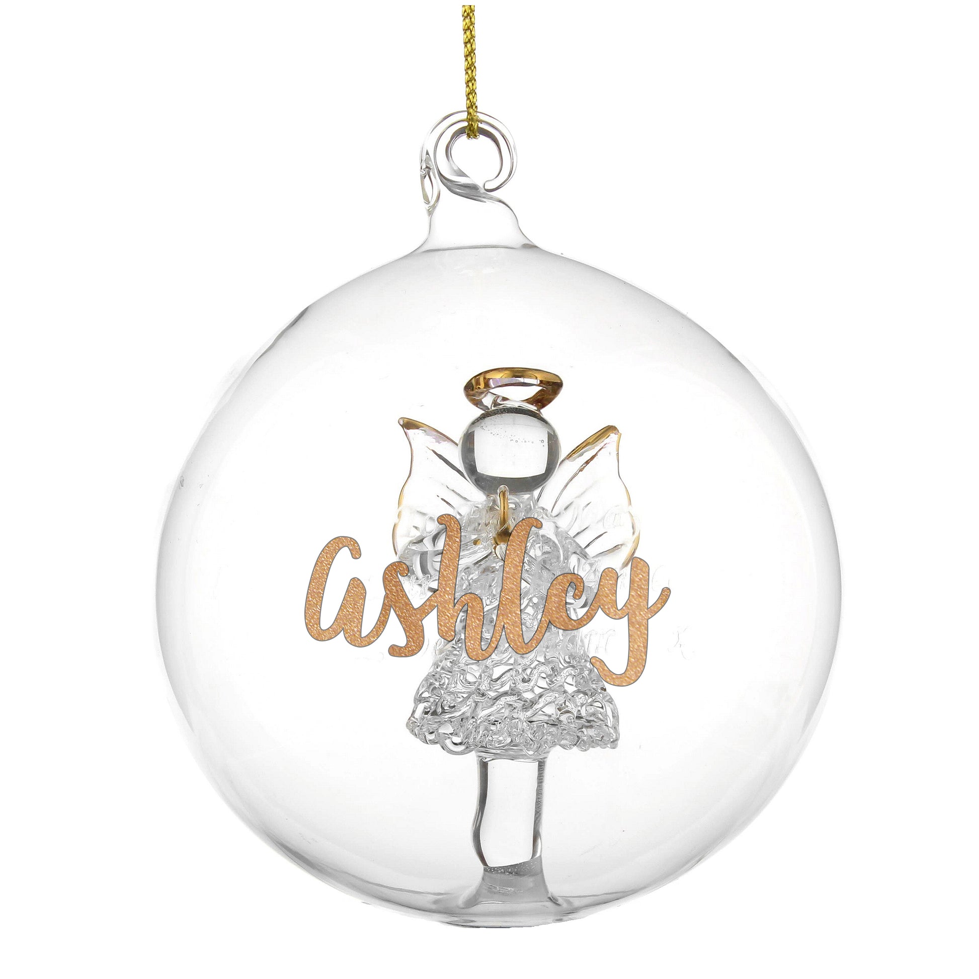 Personalised Gold Glitter Name Only Angel Glass Bauble