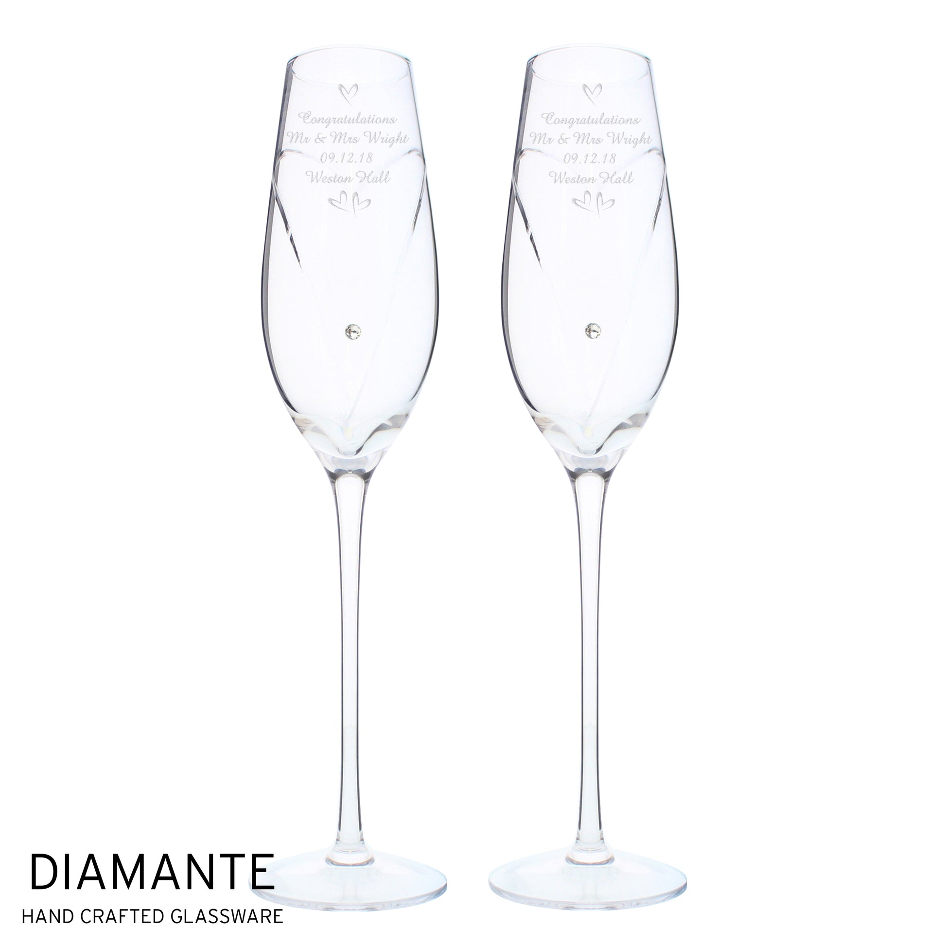 Personalised Hand Cut Little Hearts Pair of Flutes with Gift Box