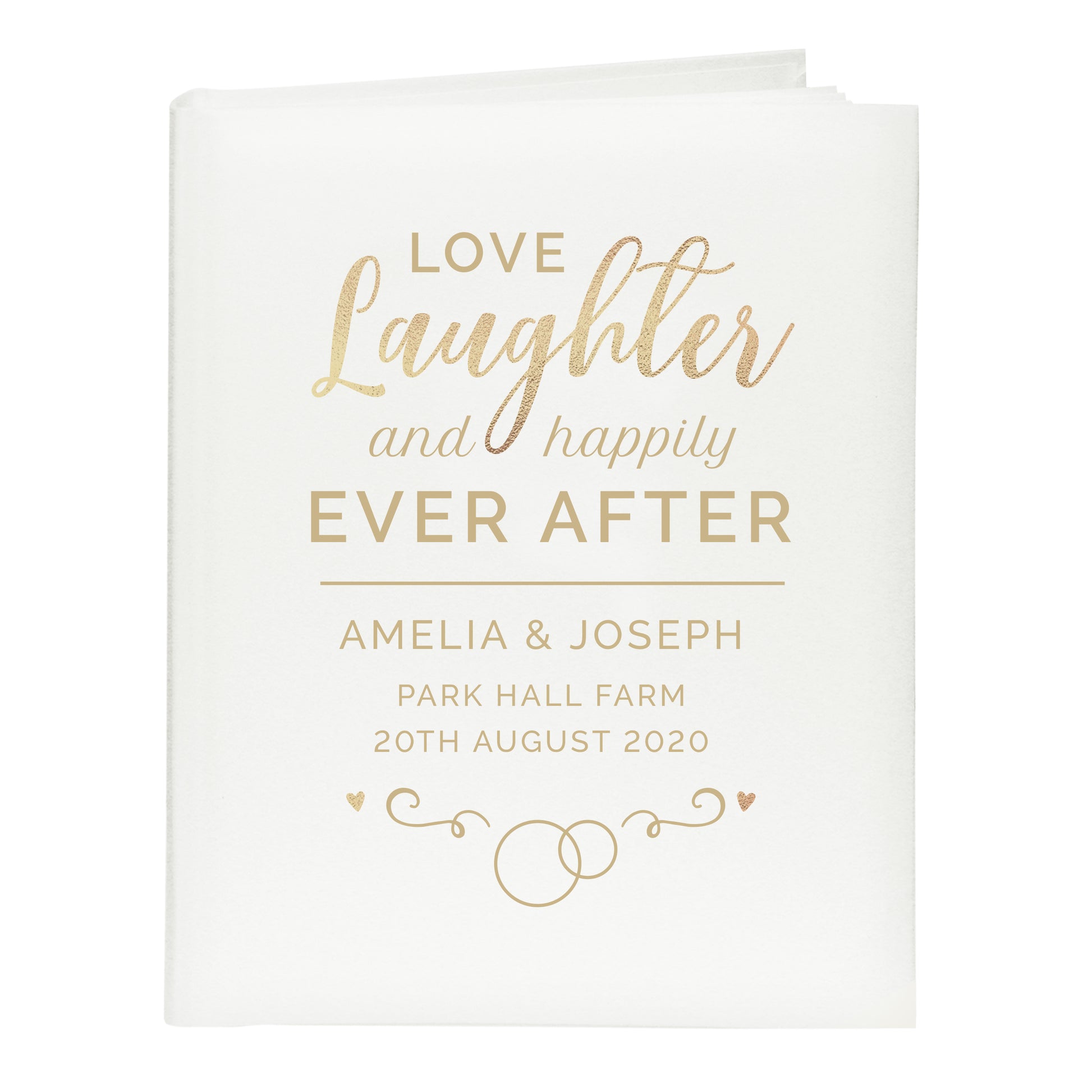 Please note 'Love, Laughter and Happily Ever After' is fixed text and cannot be changed.