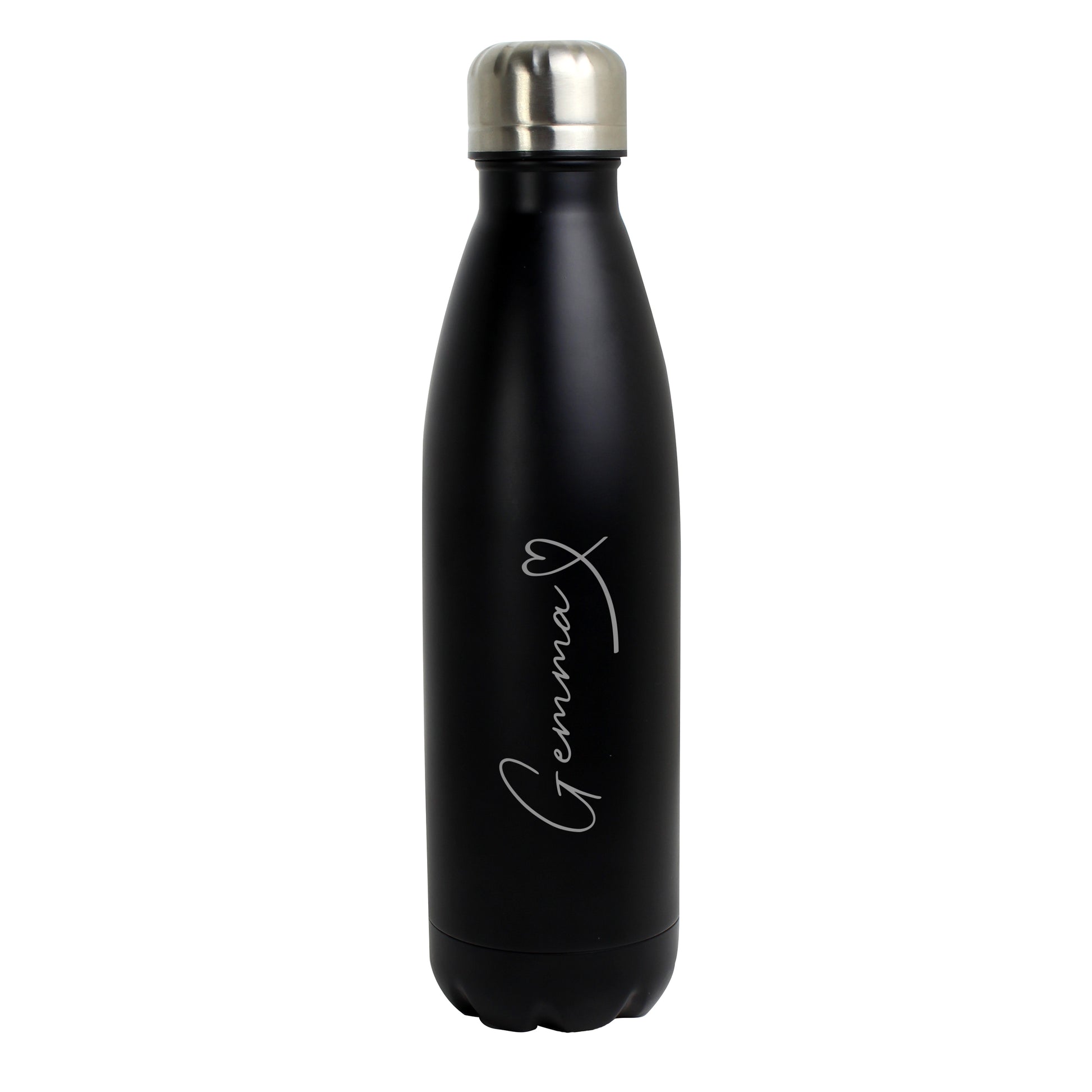 Stay hydrated on the go with our personalised heart black stainless steel 500ml double wall vacuum drinks bottle.