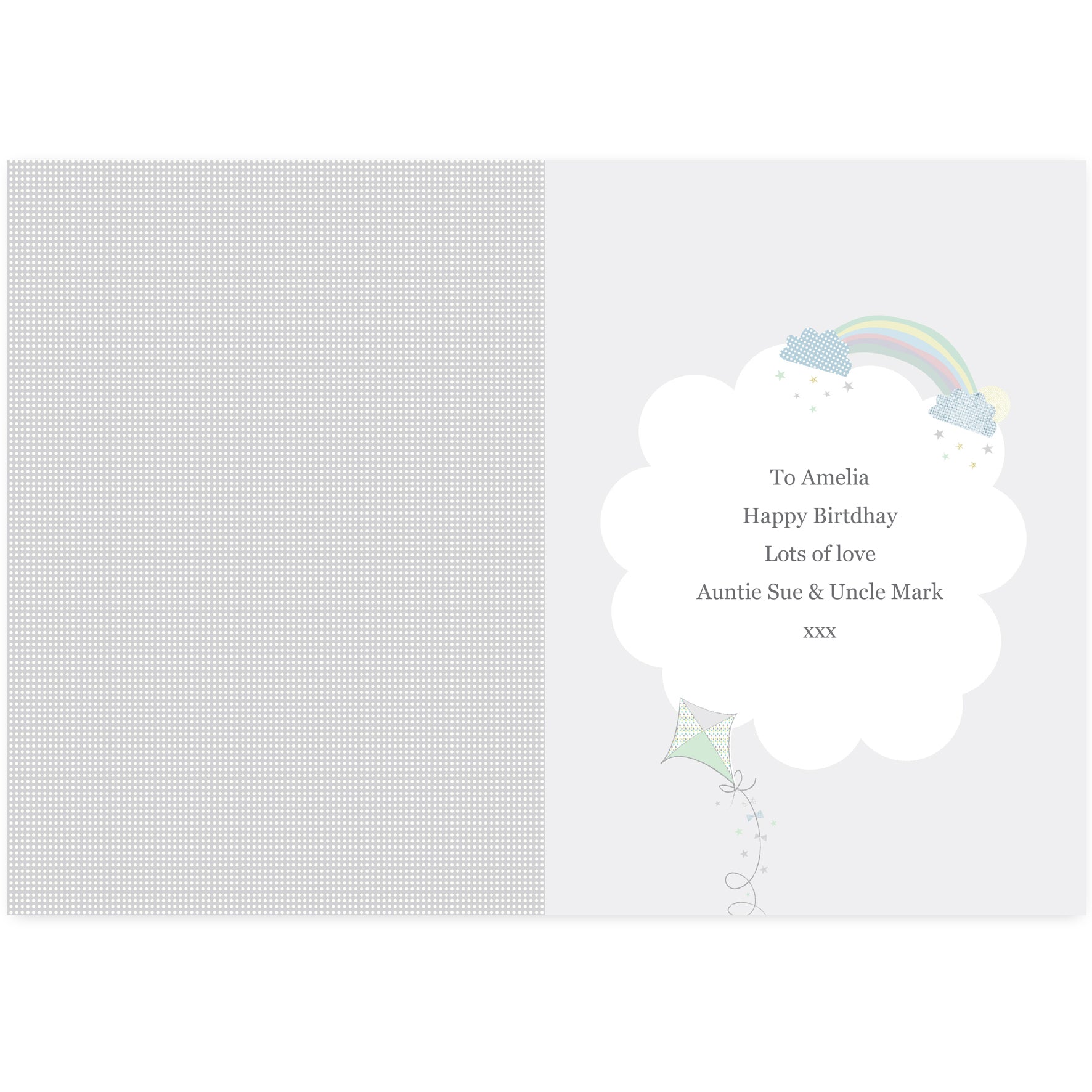 Personalise the front of this card with a name up to 12 characters and an age up to 2 characters in length. You can then add a message to the inside of the card over 5 lines of 25 characters per line.