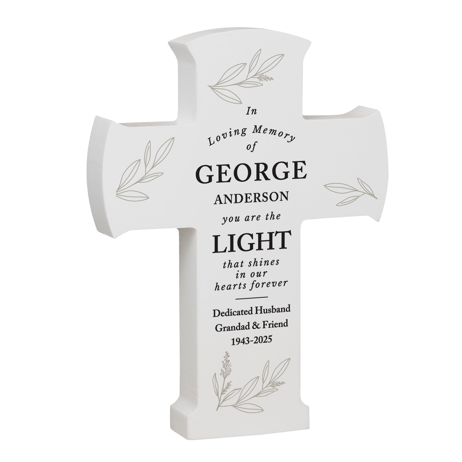 Crafted with care, this elegant cross ornament can be personalised with a message over 5 lines, making it a truly personal tribute.