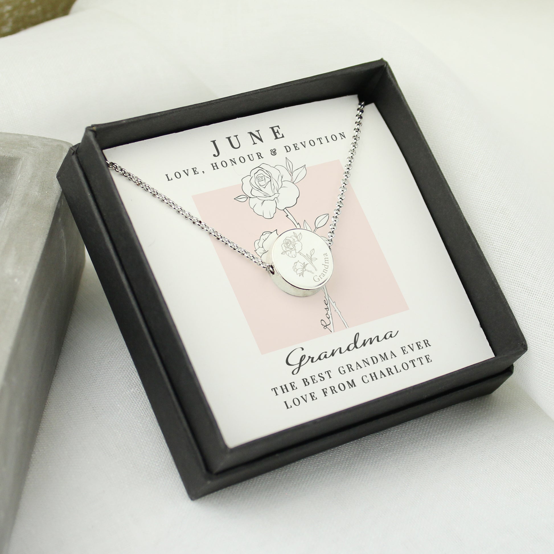 This June Birth flower necklace and box makes the perfect gift for any occasion.