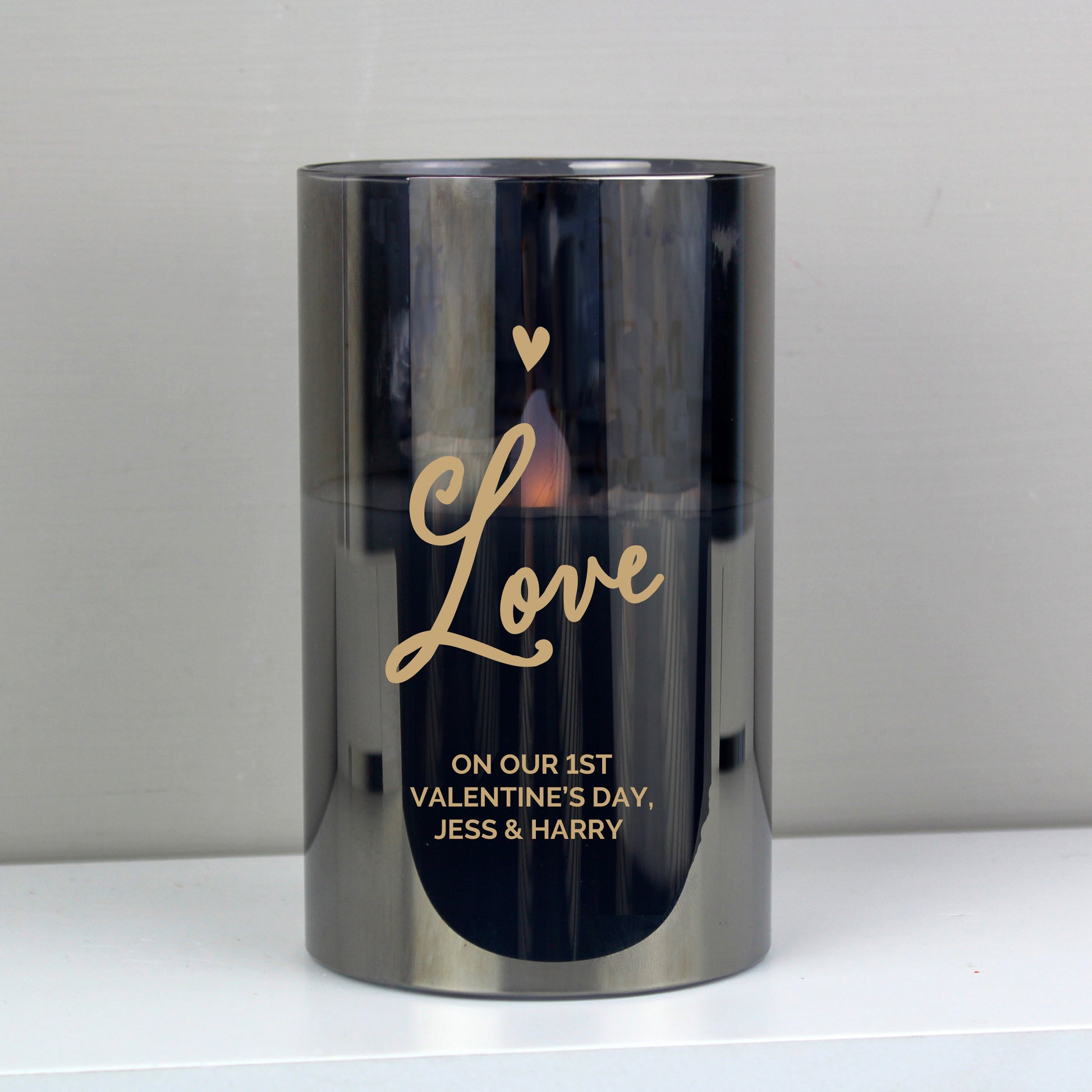 Personalised Love Smoked Glass LED Candle