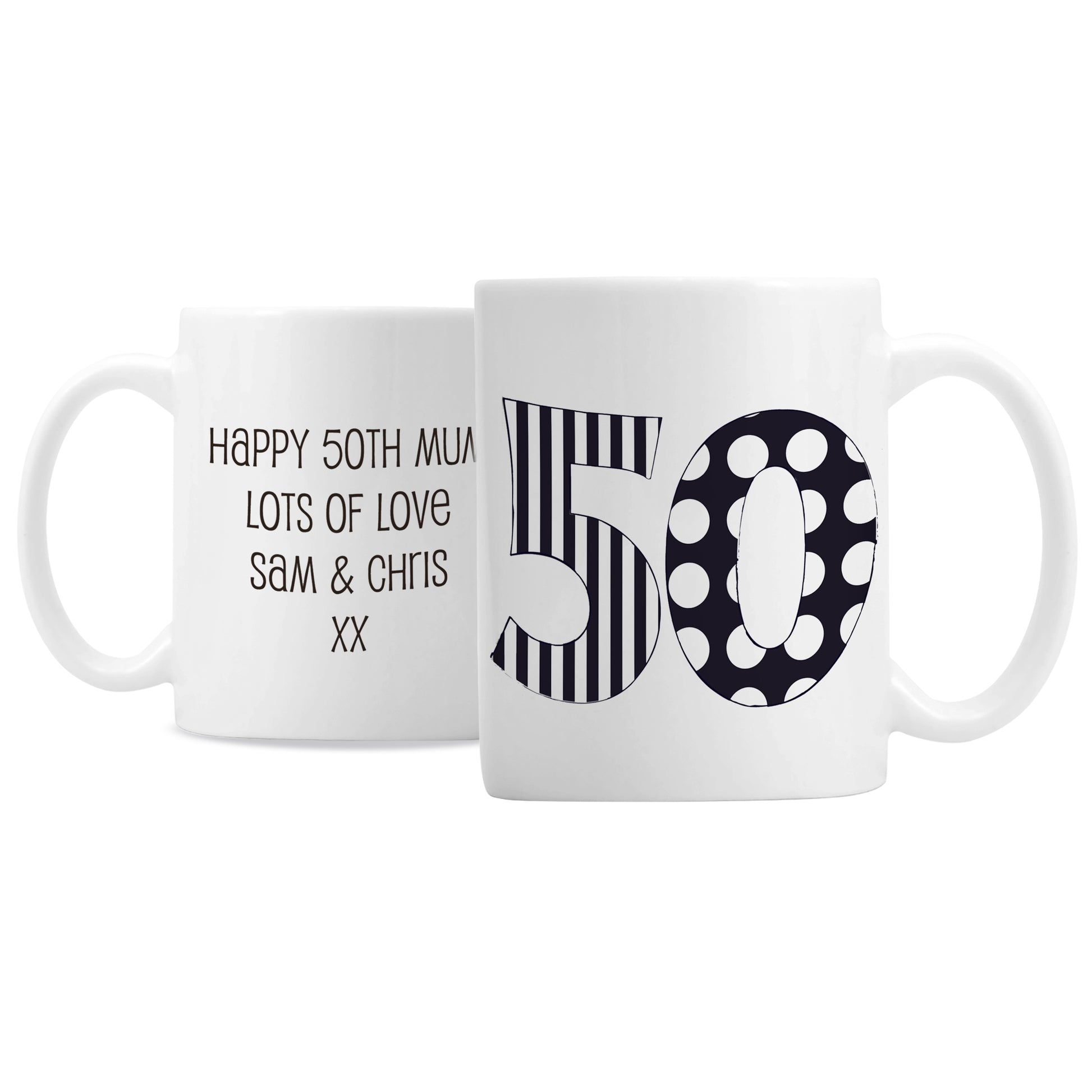 This funky mug features absolutely any age on the front in a striking black and white design. The mug can also be personalised on the reverse with a message up to 4 lines, 20 characters per line. 1 supplied per order