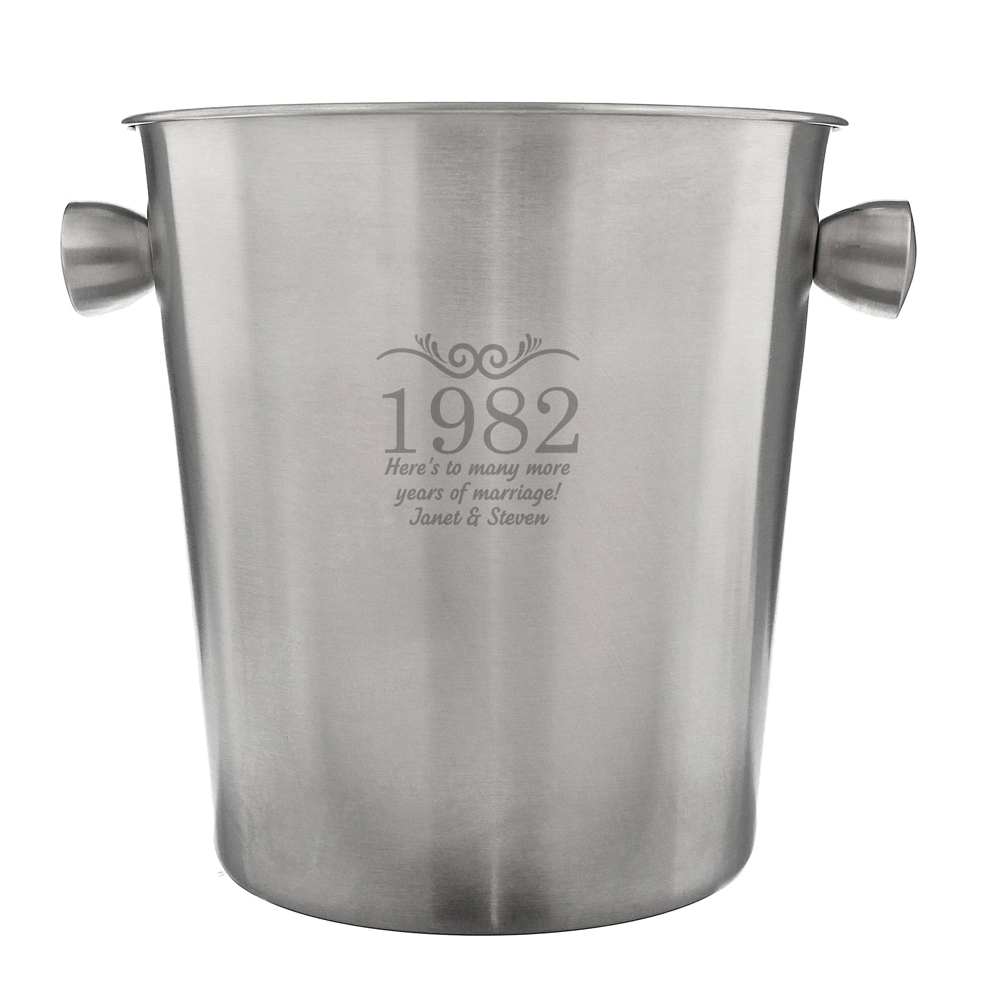 Personalise this Stainless Steel Ice Bucket with a year or number up to 5 characters .