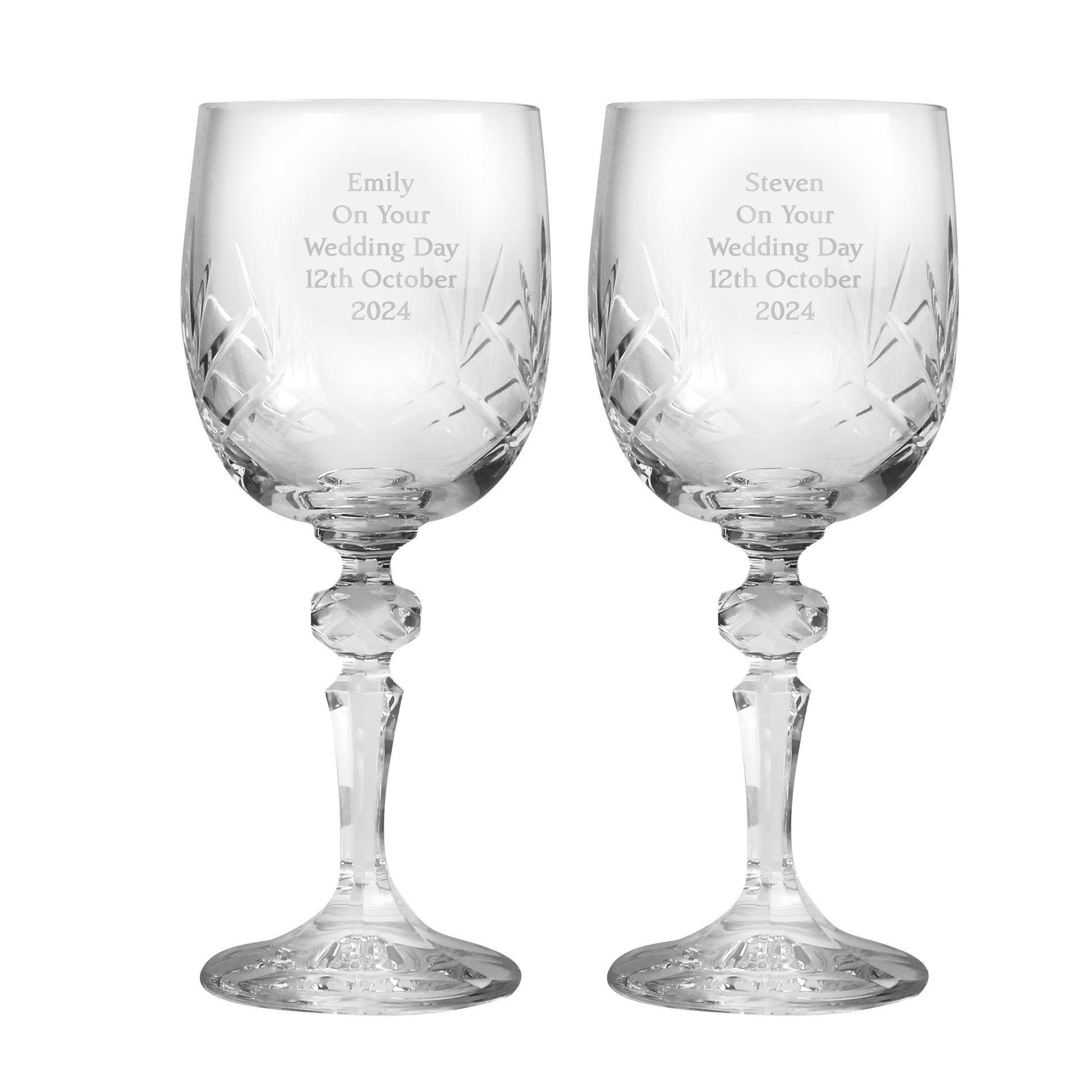 This beautiful pair of crystal wine glasses are perfect for any occasion!