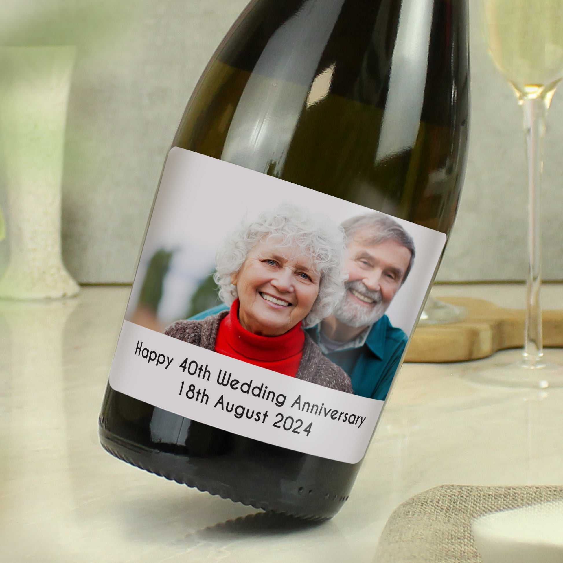 You can add an image to this Prosecco as well as 2 message lines with up to 40 characters per line.