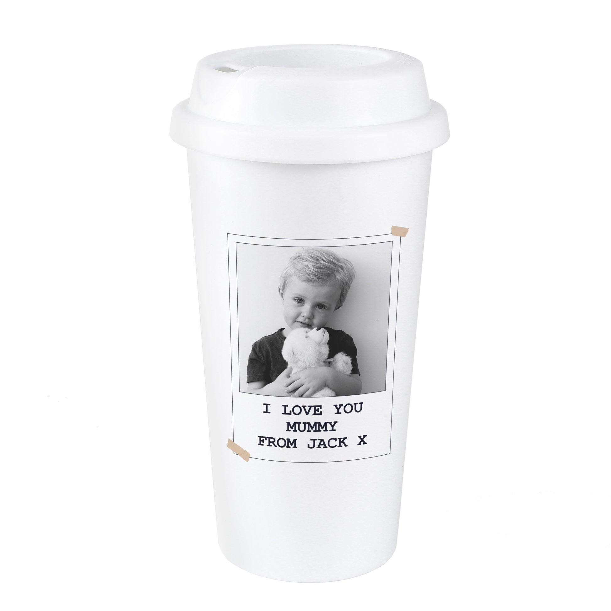 You can add an image to this travel mug as well as up to 3 lines of text with up to 15 characters per line beneath.