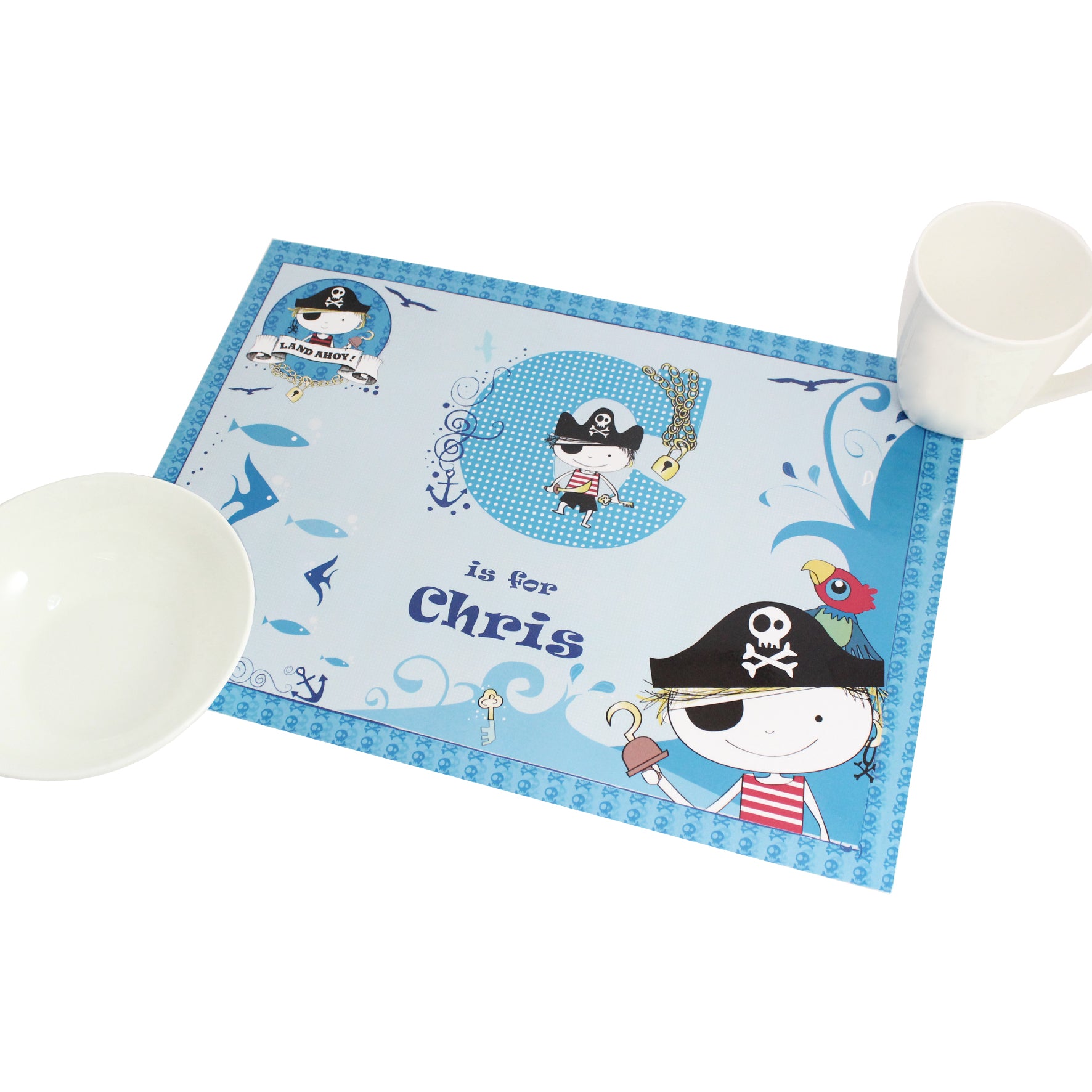 Personalise this pirate placemat with an initial and any name using up to 12 characters.