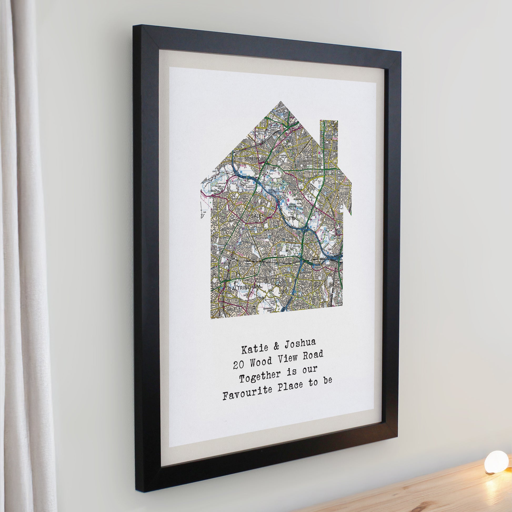 Personalise this Present Day Map Framed Print with a Full UK Postcode (see exclusions below), and a further 3 lines of up to 30 characters each for a message.